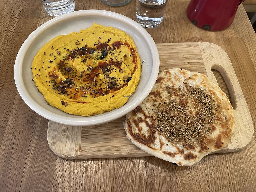 Piccolo locale molto carino, 100% plant based, menù vario, ricercato, prezzi onesti e porzioni modeste ma ingredienti di qualità. In foto potete vedere hummus alle carote con pane naan autoprodotto, pane naan con sopra melanzana e tanta crema alla tahina, toast con avocado e tofu scramble, torta di carote e crupfen al cioccolato fondente.