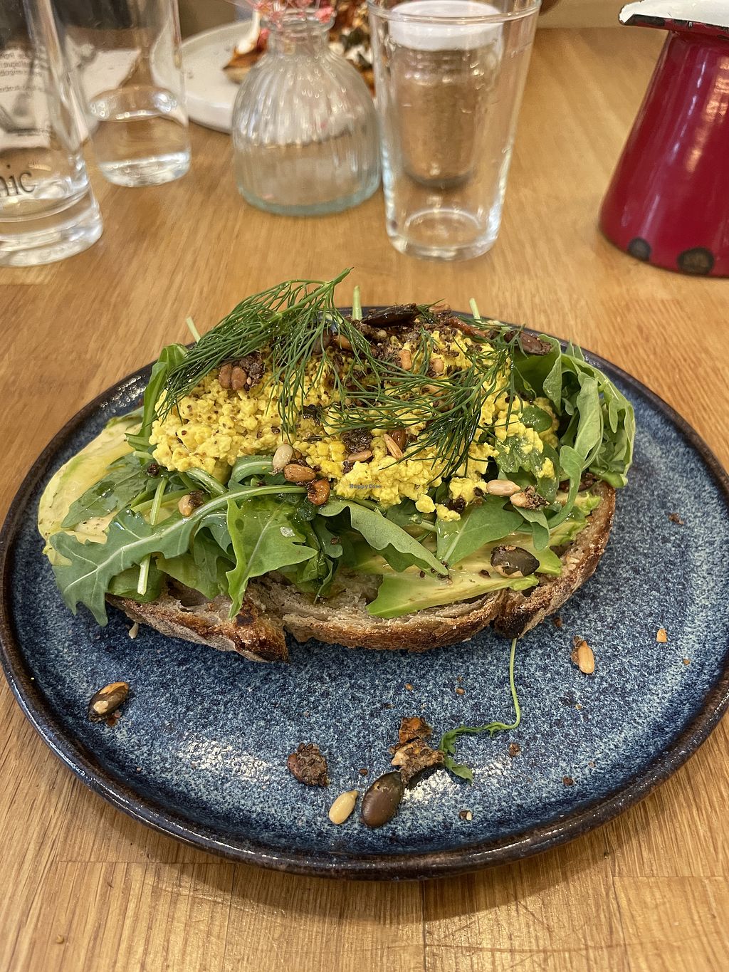 ITA: Botanic è un posto delizioso per pranzo o brunch! Ho assaggiato l’hummus di carote con pane naan e un toast con avocado e tofu strapazzato – davvero simile alle uova strapazzate, molto gustoso. Ho concluso il pasto con una fetta di torta di carote, morbidissima e piena di noci – buonissima!