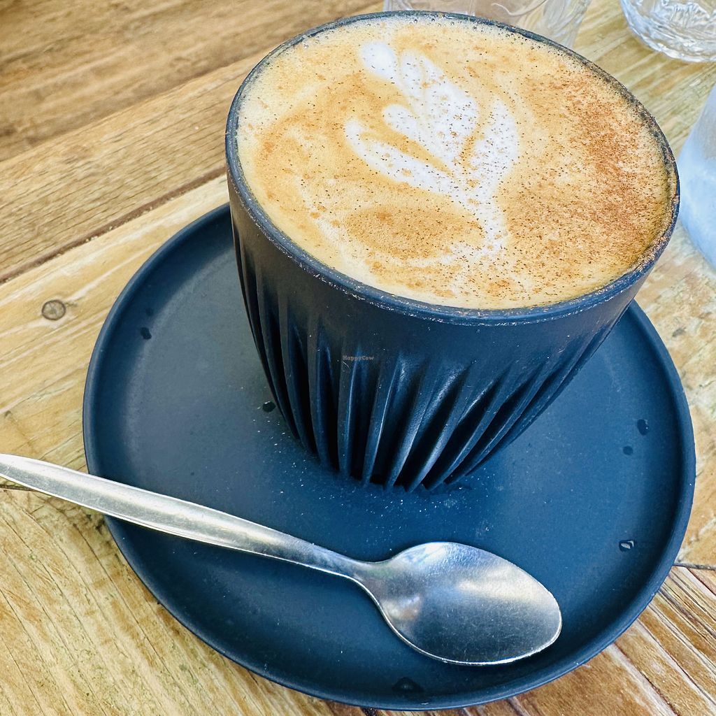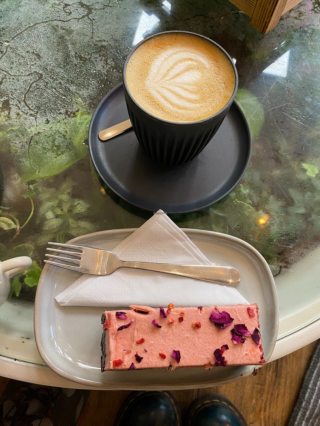 Oat milk latte and champagne truffle cake
