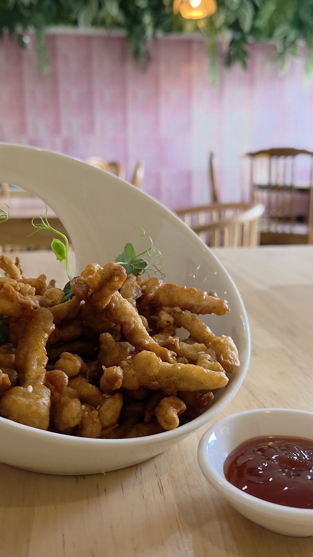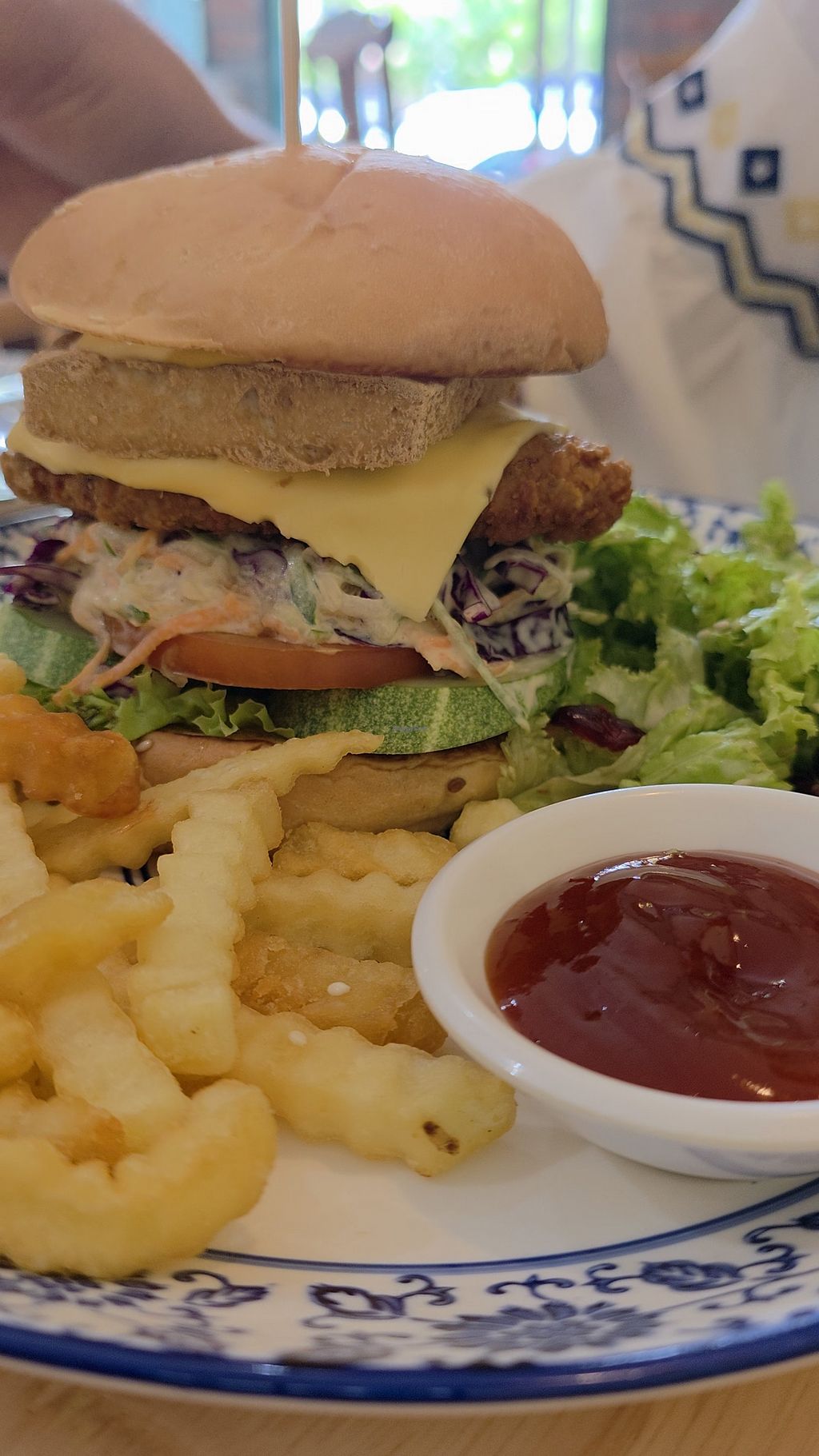 Absolutely fantastic tasting Seafood Tom yam Pasta! Generous portion. Tried their starter, KFC Shimeiji Mushroom. It was Crispy goodness. Their chicken-less burger was good. The Crispy patty was good. They could have skipped the addition of tofu though. In my opinion it didn't go well as a whole. Other than that, it was real good and worth the money spent.
