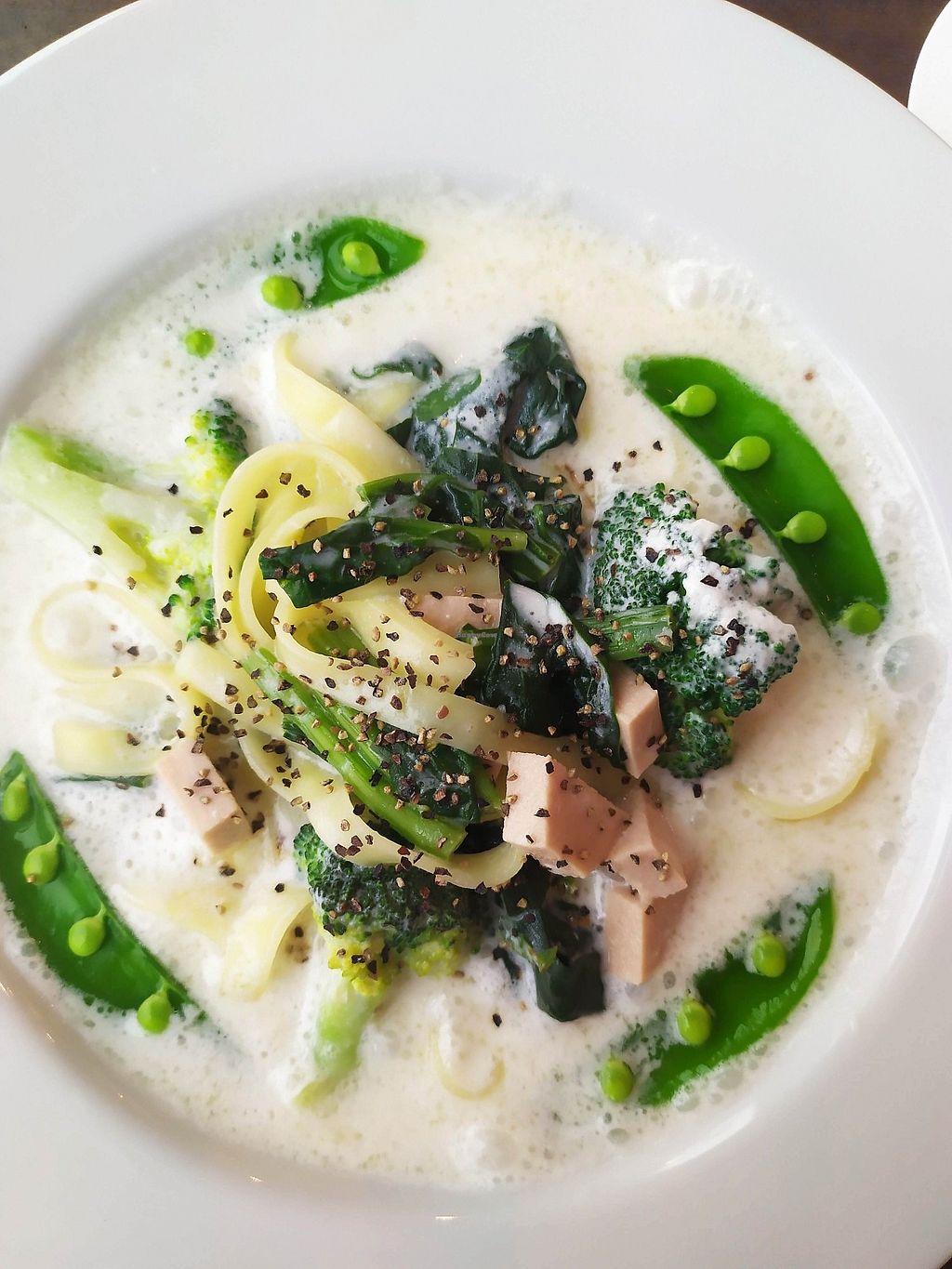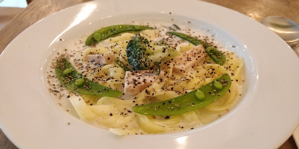 Carbonara with almond cream. Vegan, gluten free. 1400yen solo +400 yen…