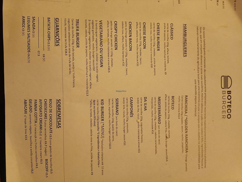 Opção vegan e vegetariano de hambúrguer. E tem uma sobremesa vegan.
