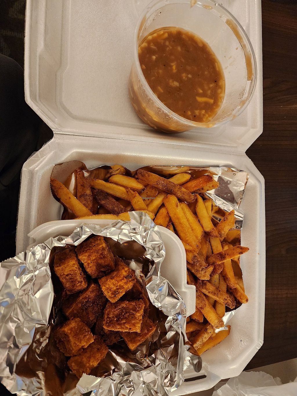 Had the spicy tofu bites and some fries with gravy tofu and cheese. Everything was fantastic.