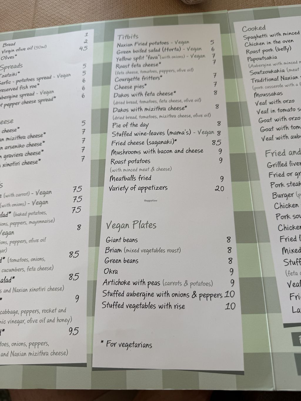 Vegan menu