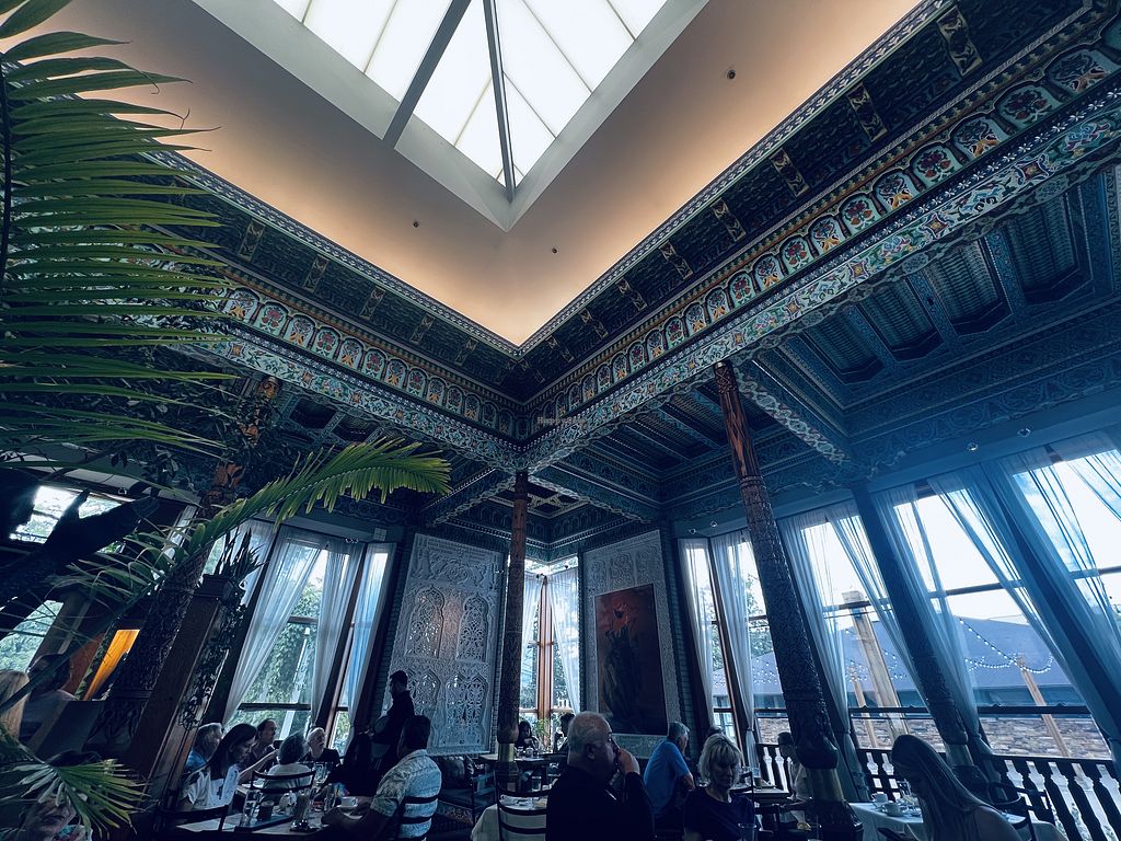 This is located in a stunningly beautiful building, with a niceties selection and some vegetarian options. It is a place to go with meat eating friends or to admire the setting or to have tea. You will find some nice things to eat here, though it is not really palace that caters to vegetarians that much. If you go knowing what to expect, you find this place to be Ok.