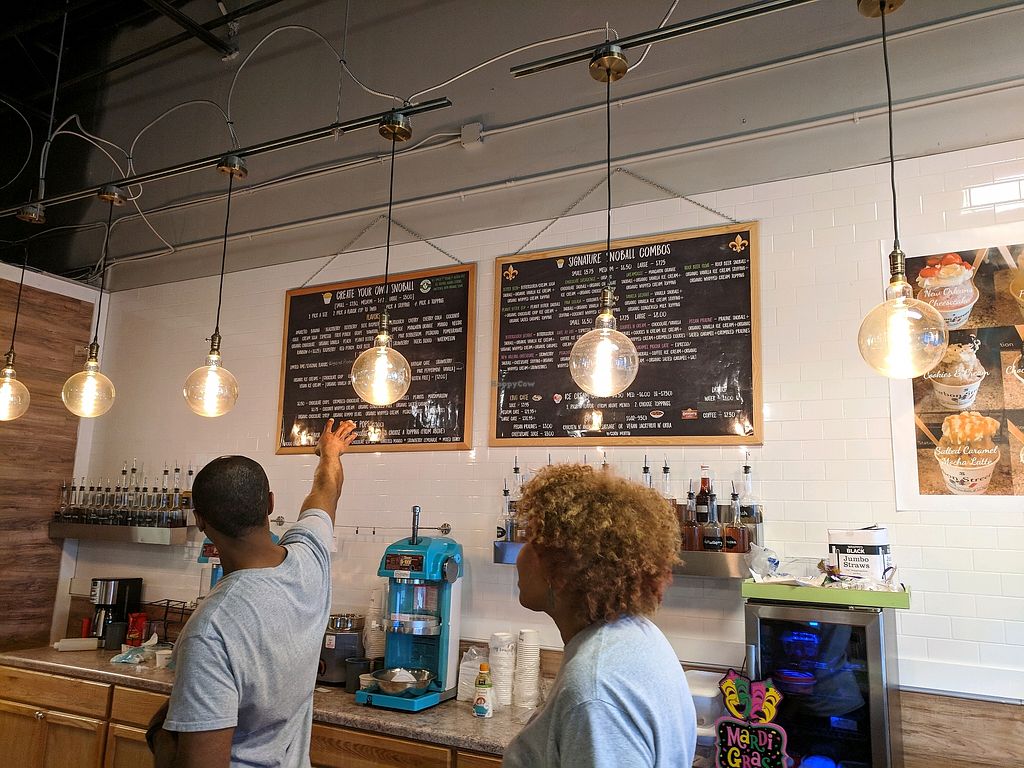 Pecan Praline stuffed snoball and root beer float stuffed snoball with…