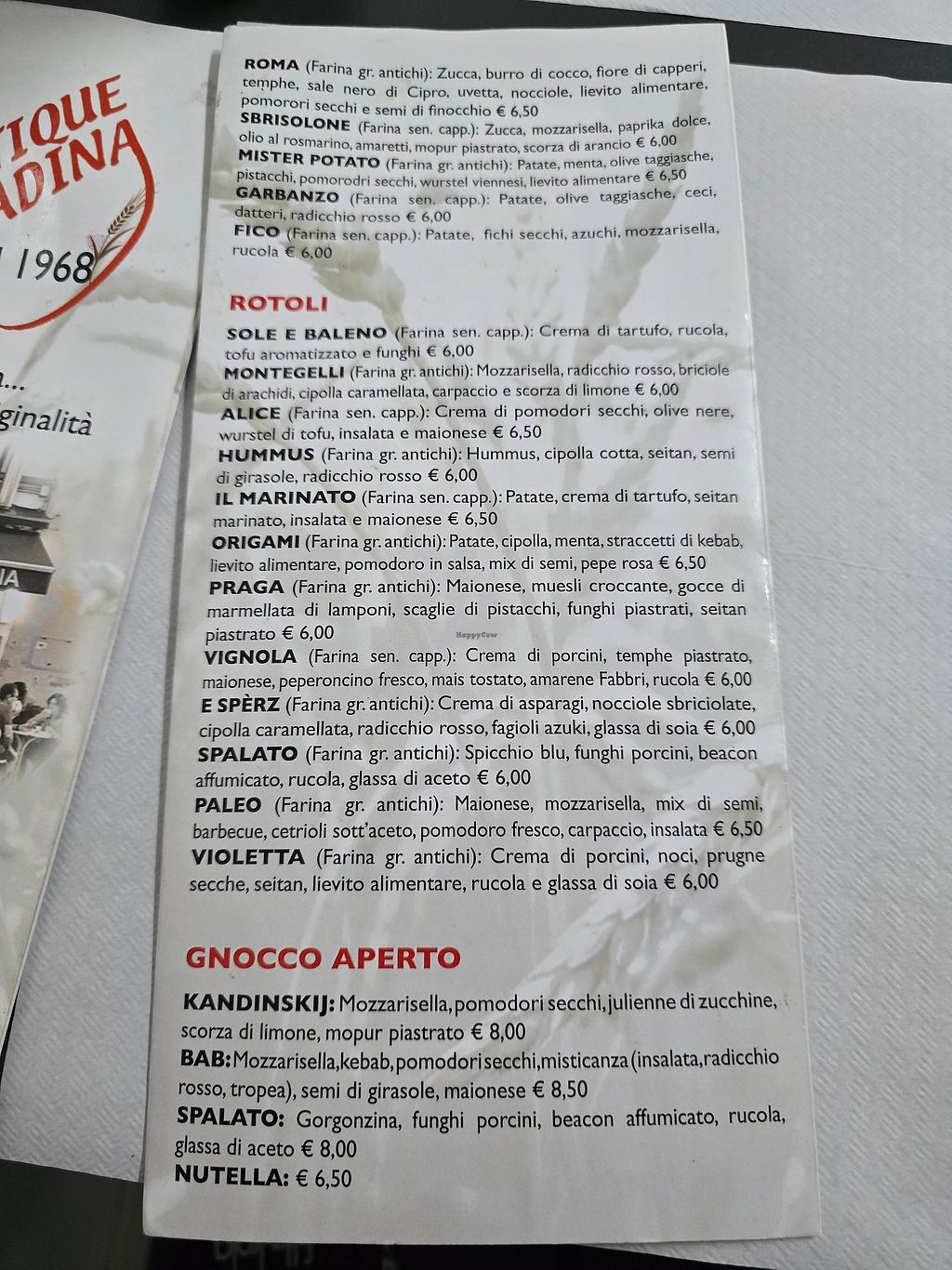 Ampia scelta di crescioni e rotoli vegani, molti anche originali! I nostri preferiti sono stati "Zia Pami" e "mister potato". Torneremo di certo!