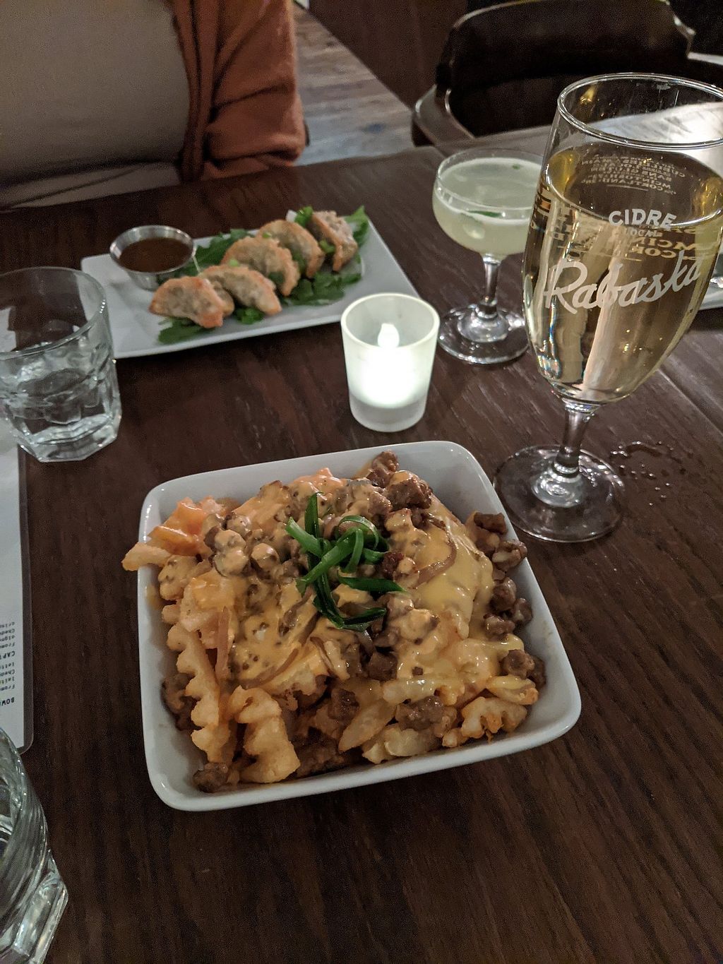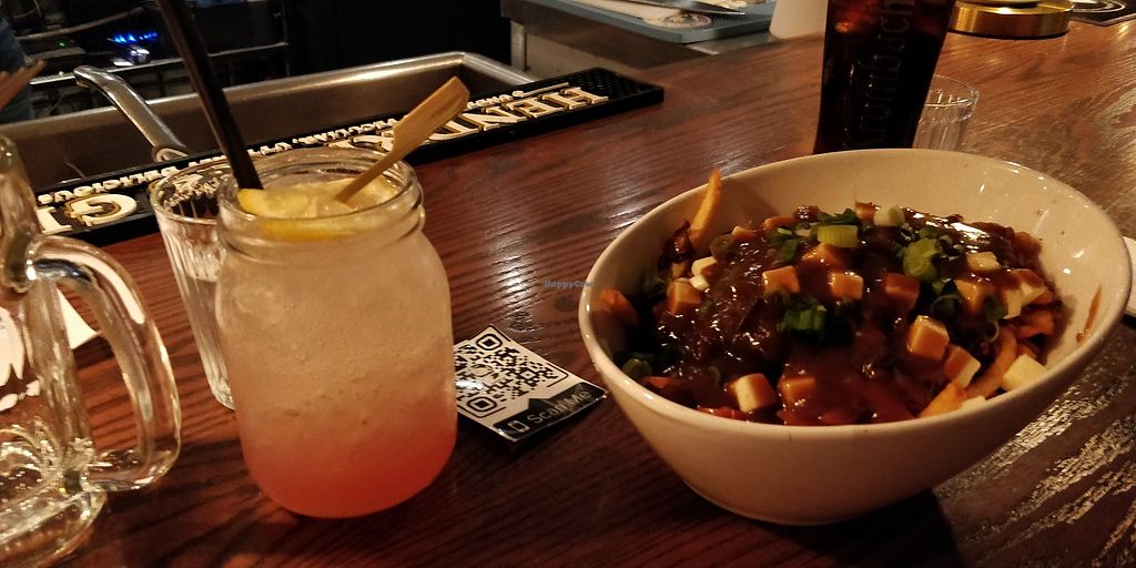 Read moreNow for the bad. Everything that was deep fried seemed to not be done correctly. Was all extremely oily, like the deep fryer was not set at the right temperature. Talking about the deep fryer, the taste was also off a bit like the fryer oil needed to be changed. We liked the texture of the the wings, and they probably would have been good if the fryer oil had been changed and they were not so greasy. The poutine was ok, but seemed to be lacking enough gravy. The fish and chips were by far the biggest disappointment. I like the use of battered palm hearts for the "un-fish" and have had it before, but it was not executed well at all when we ordered it. I feel like I am repeating myself, but, oh my, were these the most oily things I could imagine. She didn't even want to eat it.