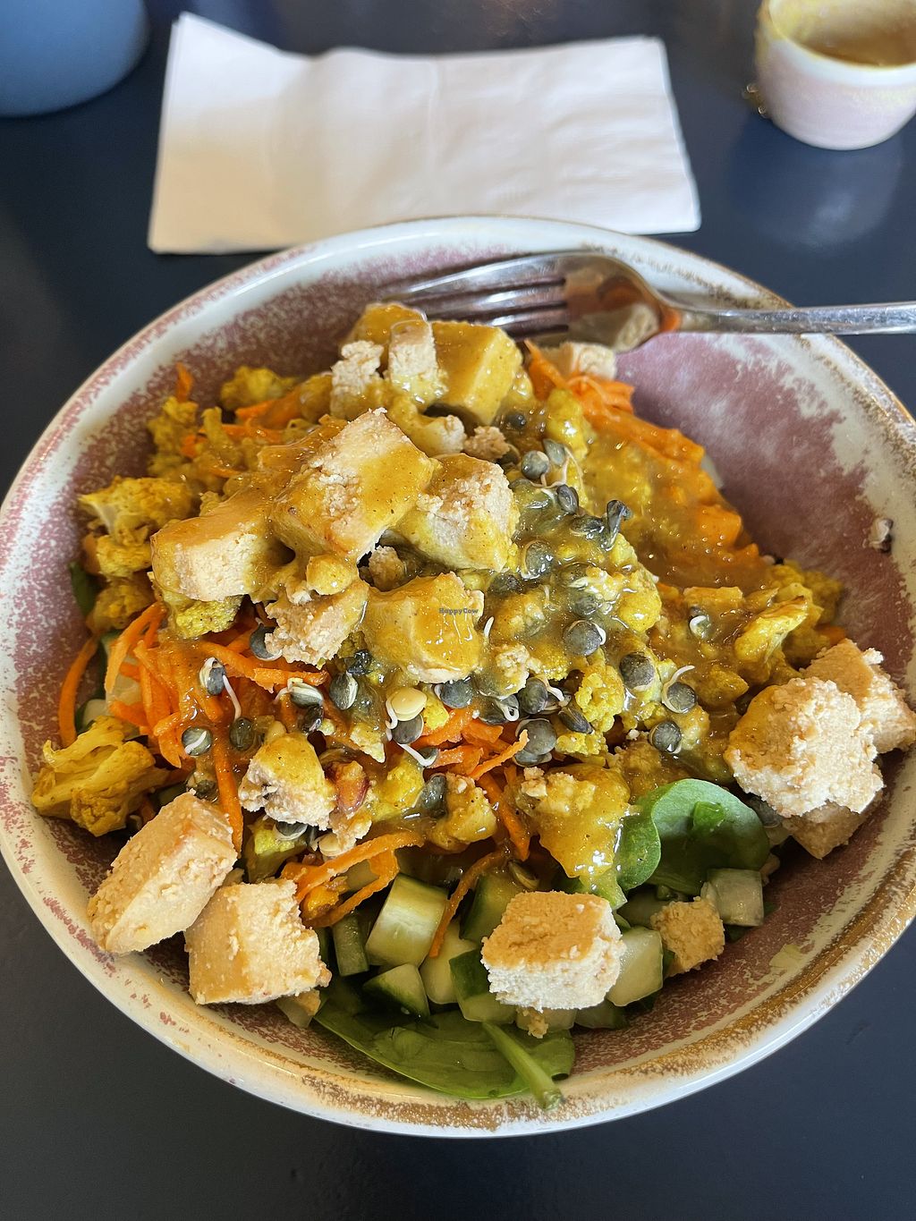 Cute little spot. They have tasty bowls. I got a #1 with tofu. Also completely gluten free