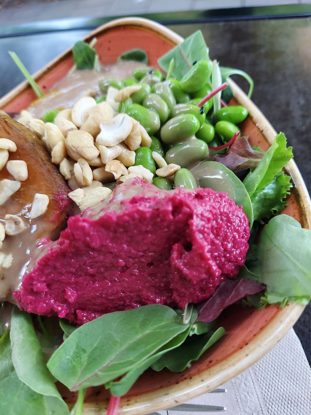 Surprisingly great for a franchise restaurant! Staff was great and very friendly, even though he was all alone and making 3 drinks (matcha latte, fresh juice and tea) took a while. Might be nitpicky but I think I was charged 1 Eur too much, but my matcha oat latte was more than 0,3 ml and actually really nice and flavourful, so no complains actually. Our bowls were super nice, too, very fresh salad and veggies, delicious sauces and hummus (my omni friends liked the vegetarian and chicken bowls as well).