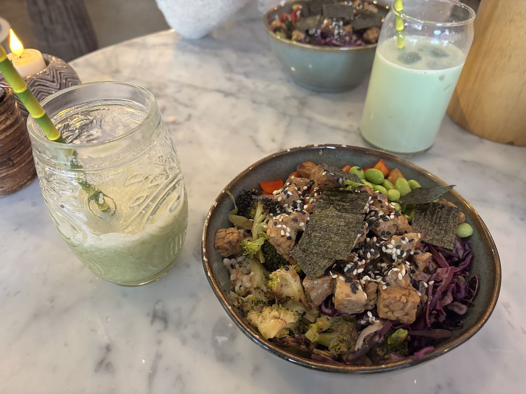 Vegan tempé bowl en een green smoothie