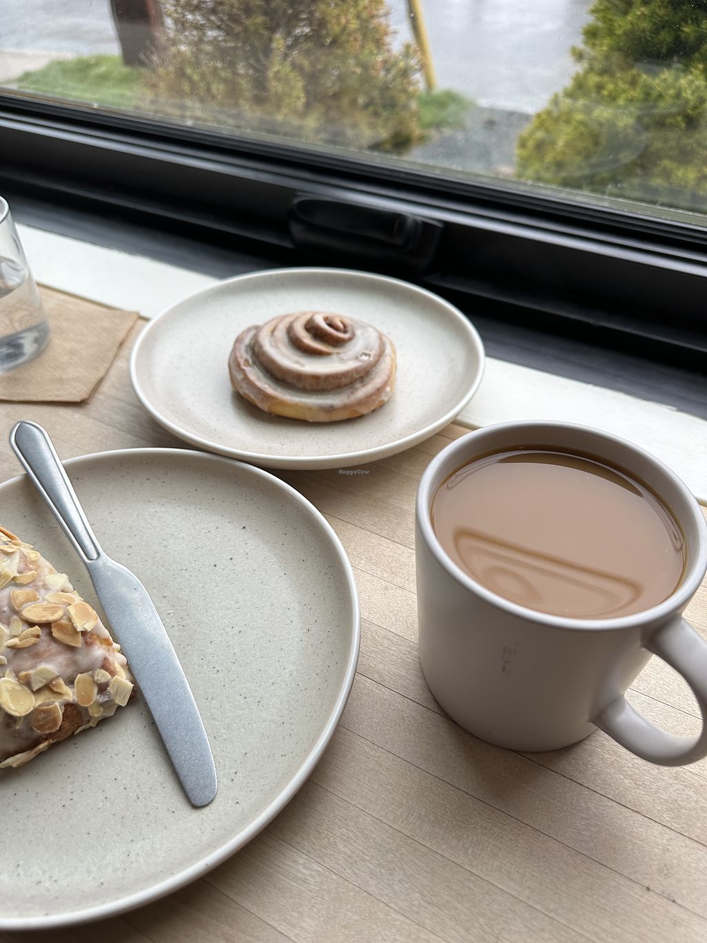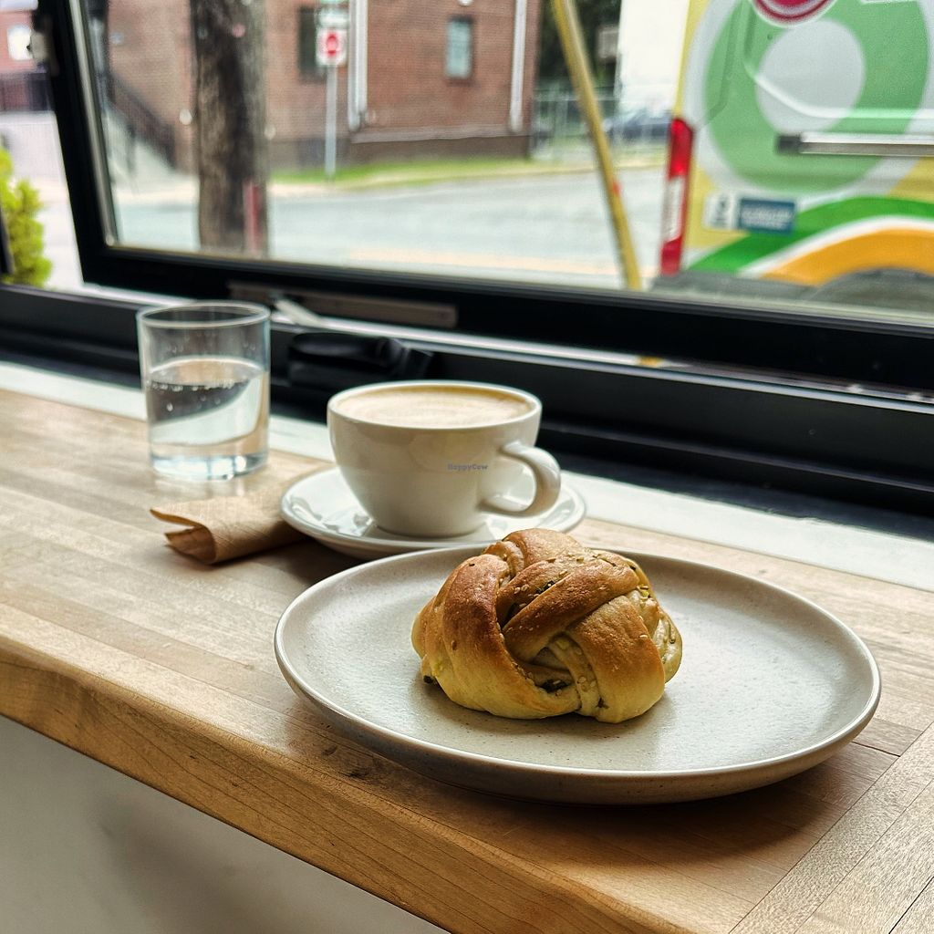 Cinnamon bun, almond pastry, and many other pastries and coffee/tea op…