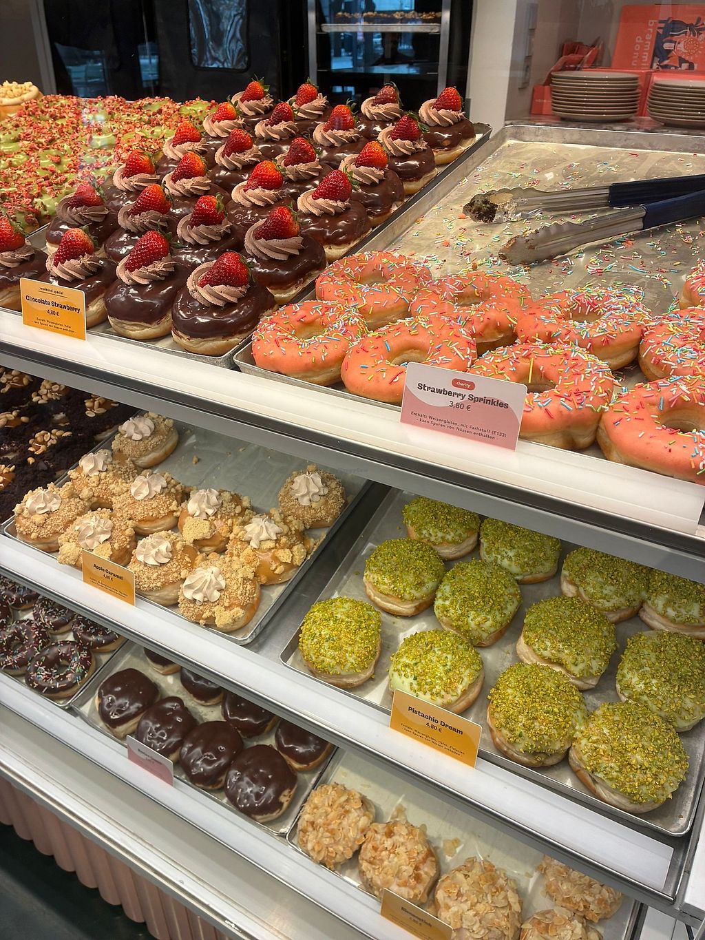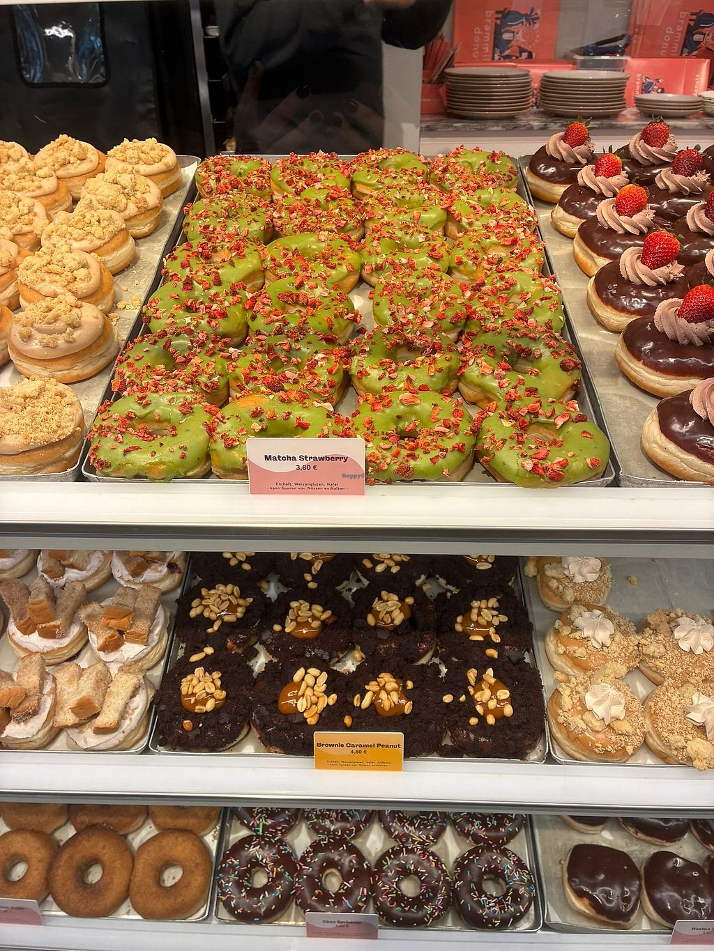 A must try if coming to Berlin! I tried the hazelnut praline and brownie caramel peanut doughnuts - both amazing! I'll definitely be coming back here before I leave Berlin!