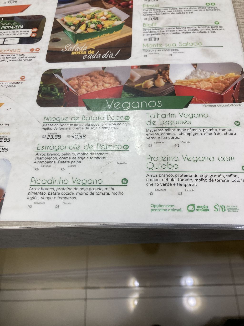 Have ordered delivery. Expensive prices. Vegan offers are limited to palmito strogonoff and potato gnocchi. sometimes vegan options are unavailable for months.