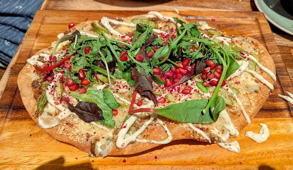 Serves meat, vegan options available. Texel brasserie with a French twist. Vegan choices include roasted eggplant with miso & vegan cheese, beetroot hummus with papadum, oyster mushroom carpaccio, pulled jackfruit with guacamole, roasted cauliflower with coconut yogurt and vegan kimchi burger. Open Mon-Fri 17:00-22:00, Sat-Sun 13:30-22:00.