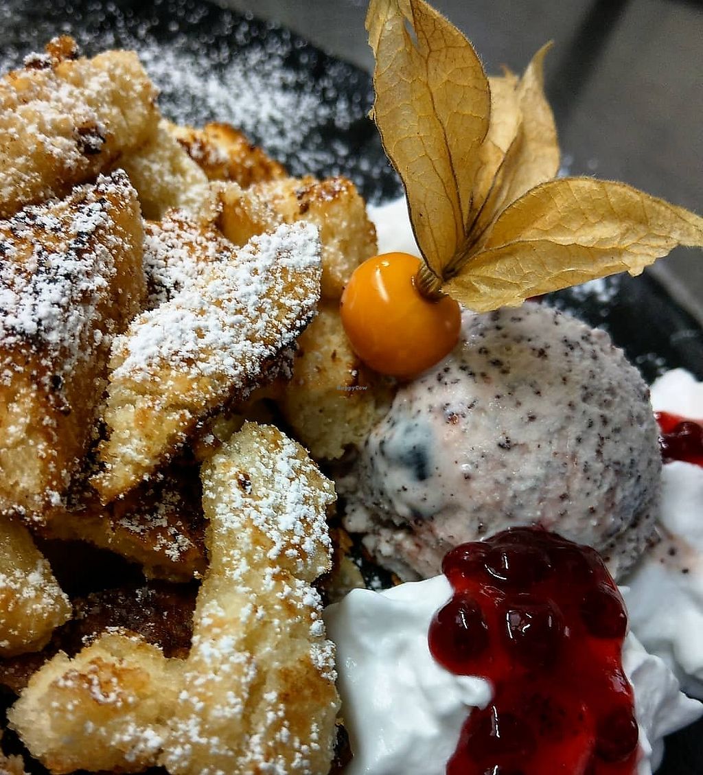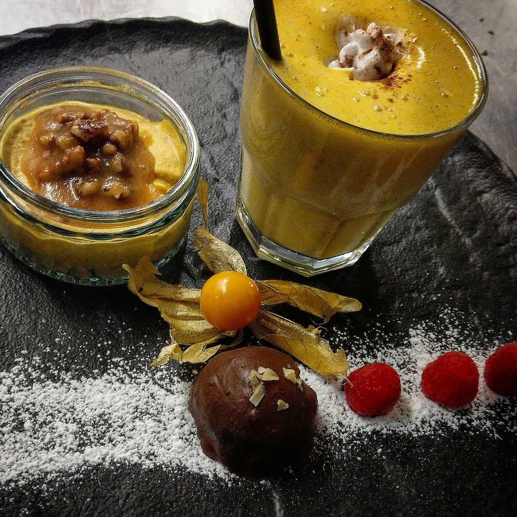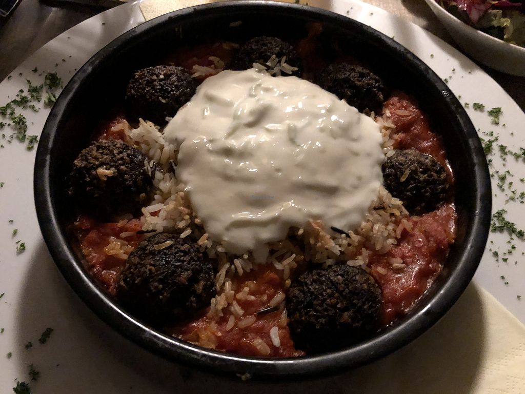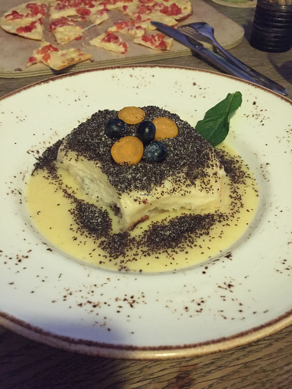 The burger and Kirschbombe were really good, the greek mushroom balls were a bit too salty, but still good. The creme brulee tasted just like soy, that's the only thing that I wouldn't recommend.