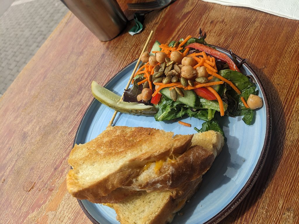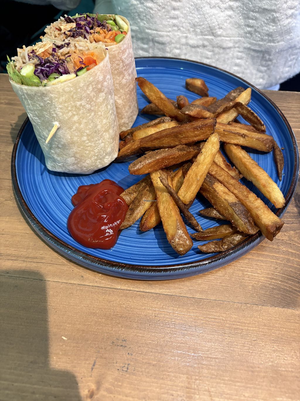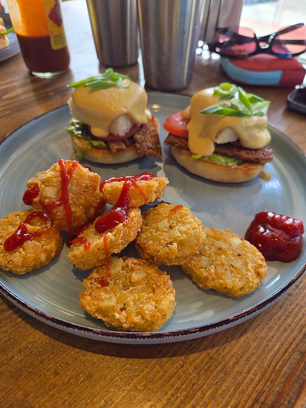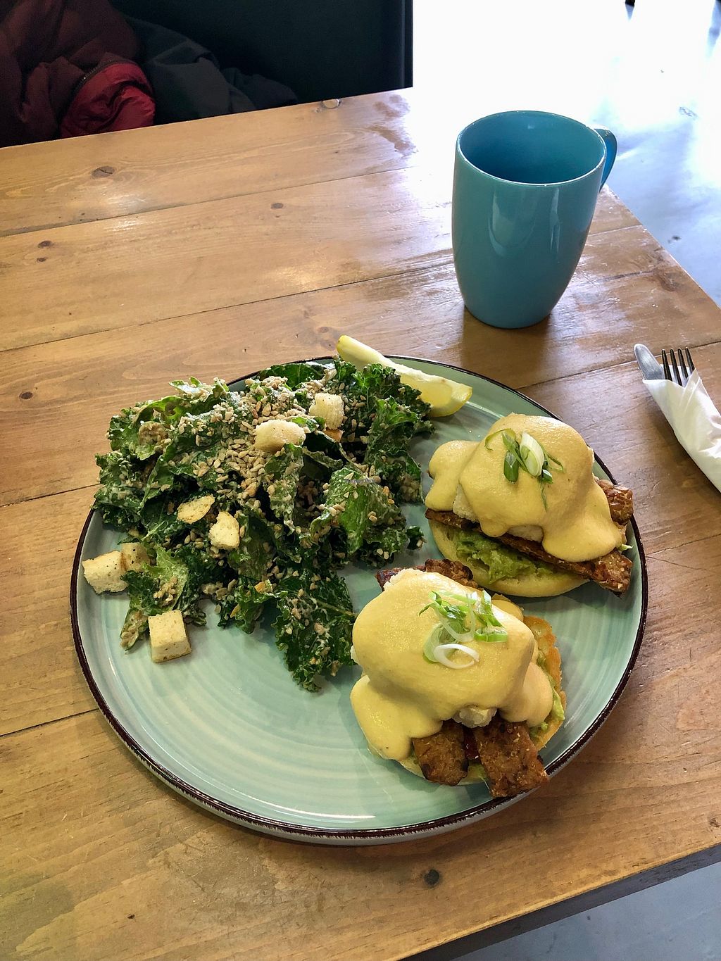 Kakao mit Kokostopping, warmer Brownie mit Vanilleeis.