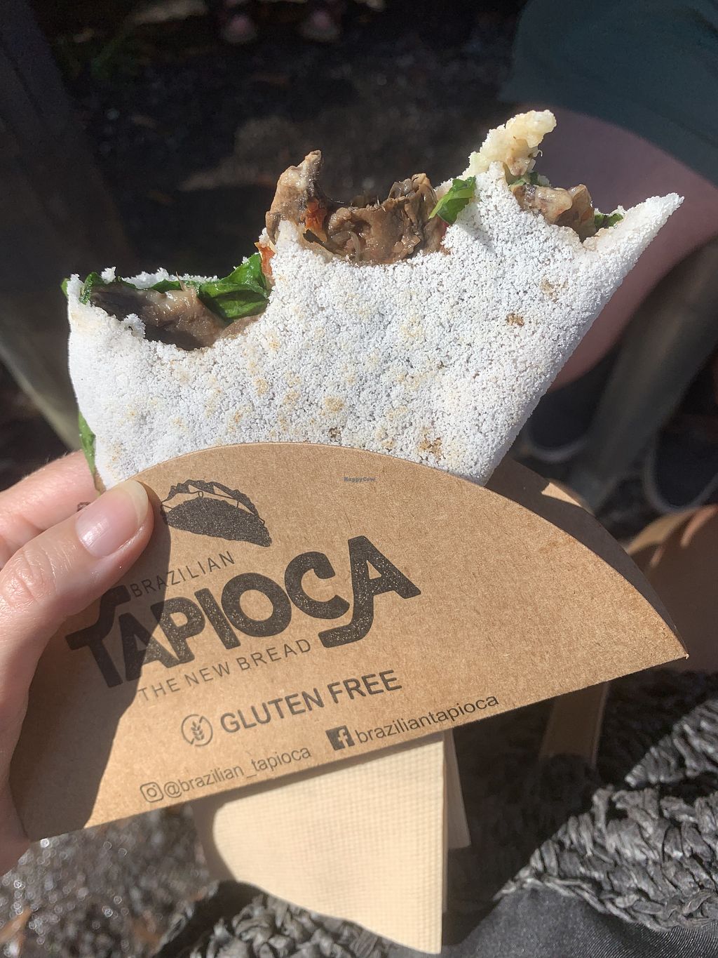 Lovely brekky from Noosa farmers market on Sunday mornings. I enjoy the spinach, mushroom, avo, tomato and vegan cheese toasted tapioca wrap which is great.