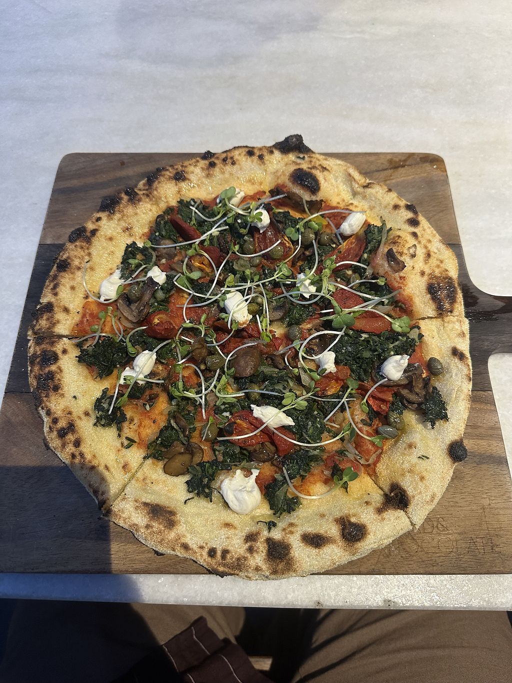 We went there for a late lunch and were amazed to see so many vegan options. We ordered vegan pizza with sourdough bread and bread and chocolate on sourdough bread for dessert. The pizza crust was one of my favourites i have had in India. Their coffee was great too since it's outsourced from Subko
