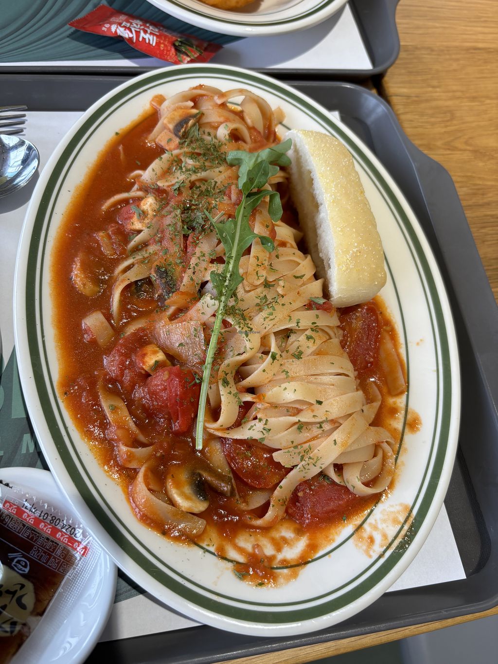 Spaghetti aglio e olio with sliced Mozzarella cheese and fried dumplinβ¦