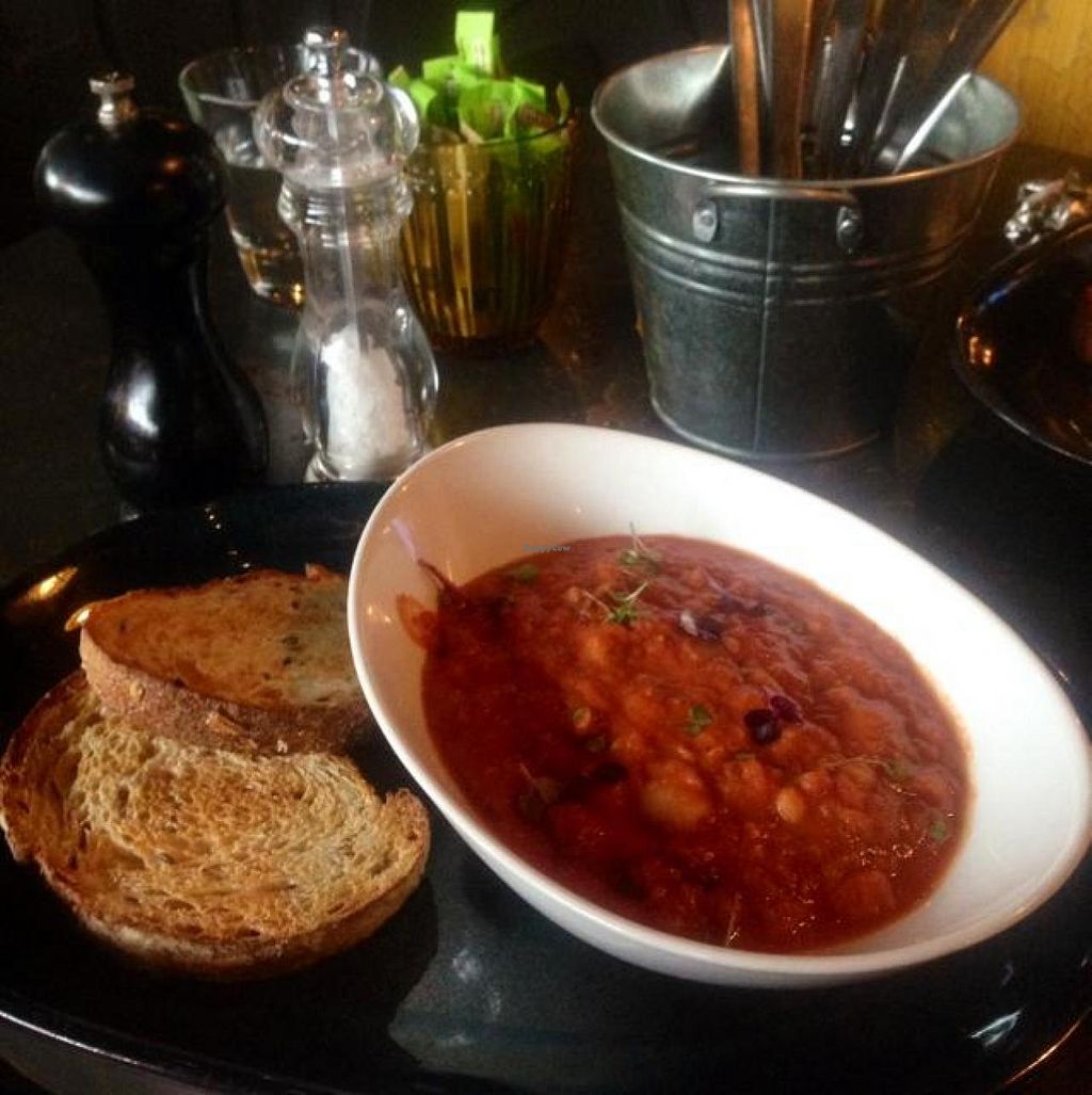 Serves meat, vegan options available. A breakfast/brunch restaurant with high ceilings and warm sepia tones. A huge outdoor deck with heaters and plants. Breakfast menu is vegetarian and vegan (apart from a roll). Menu items include bircher muesli made with chia and coconut water and served with coconut yogurt, African baked beans, seasonal fruit salad, breakfast bruschetta with spinach, avocado and mushroom and more. Will happily adapt most vegetarian menu items to be vegan. Coffee is made with Bonsoy. Kitchen is divided - any meat is cooked on the opposite side. Removed from HappyCow due to poor veg options, Sep 2014.