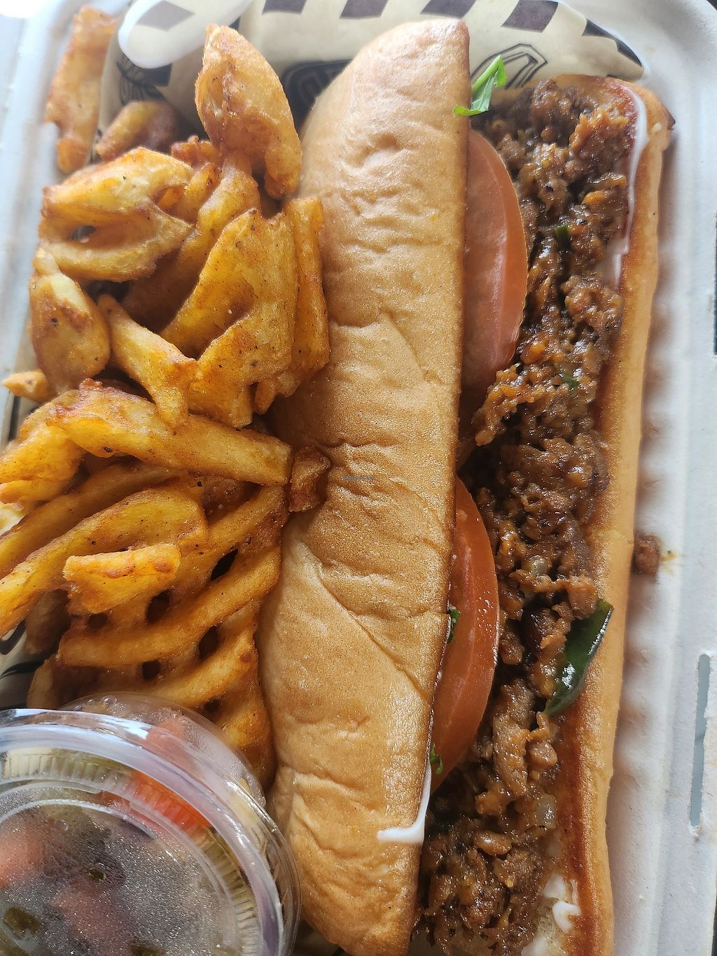 Food truck that also offers catering. Serves vegan Philly cheesesteak, vegan Philly egg rolls and vegan cauliflower wings. Located outside of Extra Space Storage. Open Tue-Fri 11:00am-6:00pm, Sat 12:00pm-7:00pm. Closed Sun & Mon. Weather might change hours.