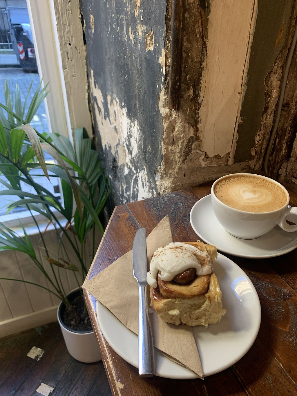 Had a latte with oat milk (30p surcharge ^^) and a cinnamon pastry, which was alright