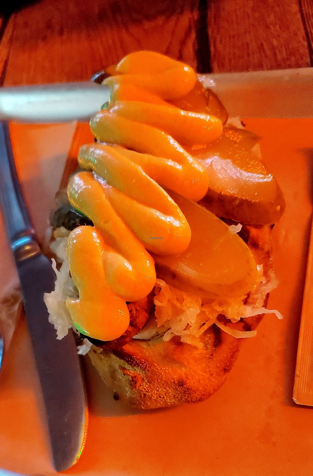 Bar restaurant with some vegans options. Others Brewdog pub have more vegans options than this one who have only pizza and hotdog. I tried the Holy Chipotle vegandog and it was ok the Brat is better in my opinio. They are bit strange, feels like pizza dought with a sausage on top, and its pretty complicated to eat. The pizza is ok.
