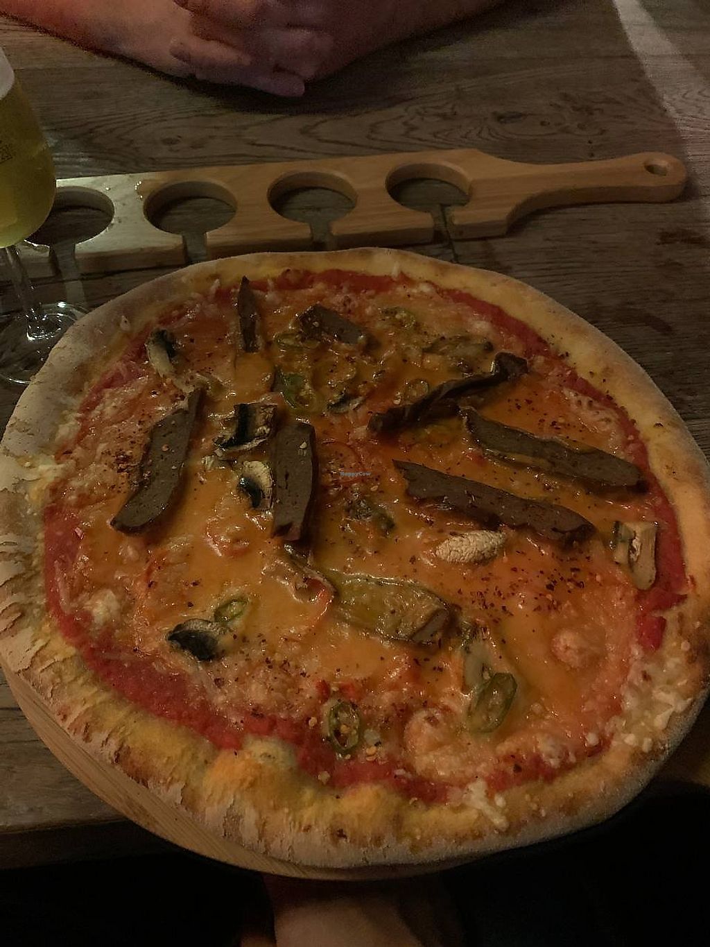 I’m usually a little meh about vegan pizzas, as the vegan cheese usually just overtakes everything flavour wise, but I really did like this one a lot. Also nice that you can get a vegan dipping sauce for your crusts. Beers are a bit pricey but mostly vegan.