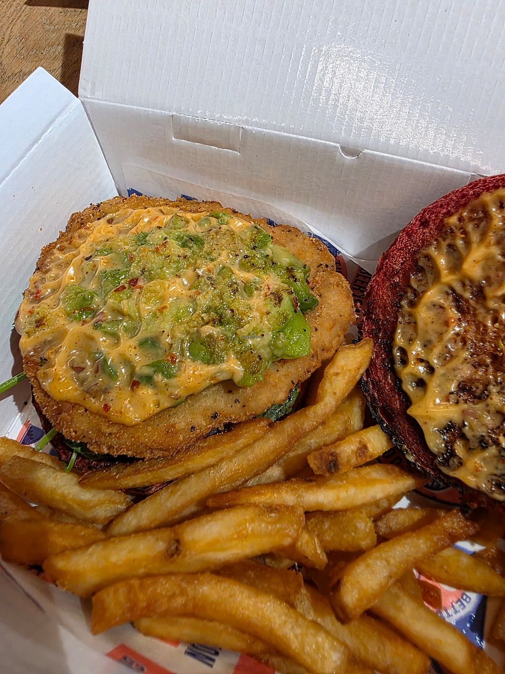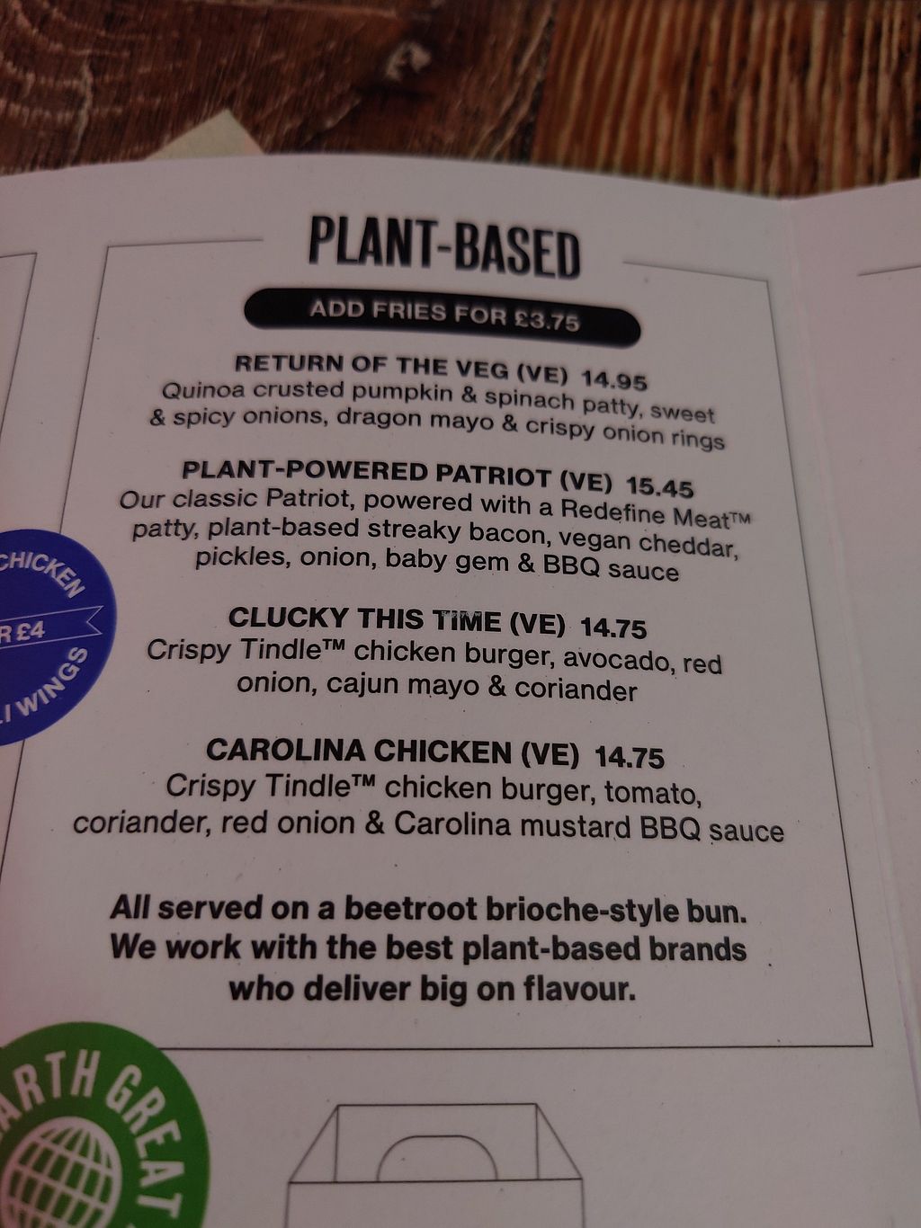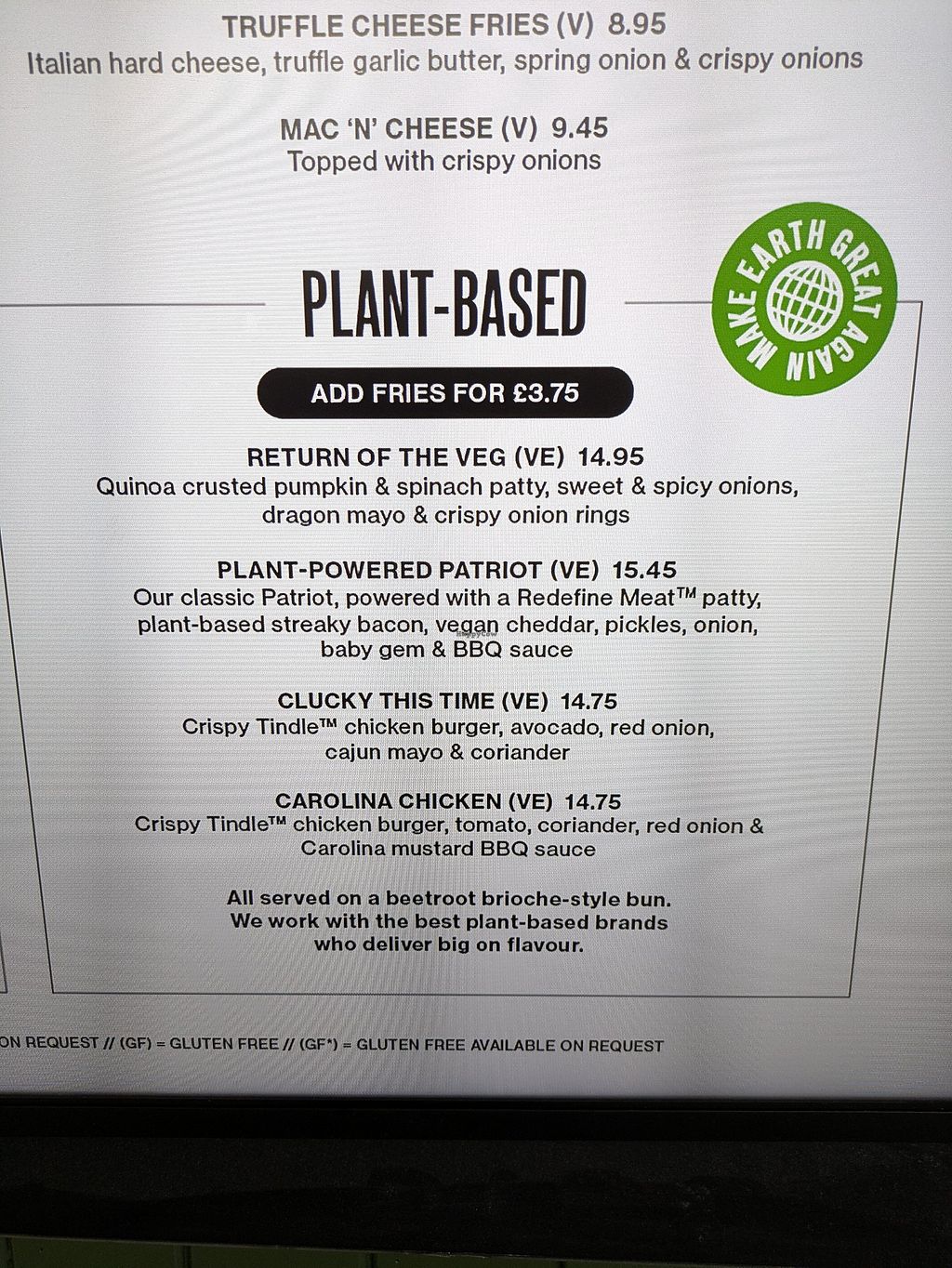 Return of the Veg burger, fries, cauliflower wings, vegan mayo