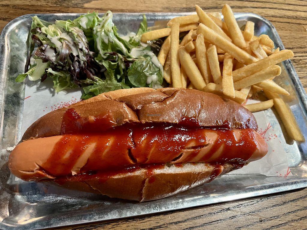 Read moreWe also ate at the restaurant afterwards. The menu has labelled vegan options (plant based- PB, and vegan options- VGO) which included a range of pizzas, hot dogs, burgers, sides etc (only sorbet as a dessert though). Some of the food options were a bit pricey but they really range in price. We got a vegan currywurst hot dog which came with fries (£15.50), a marinara pizza (£8) and a Shroom pizza with vegan cheese (£12). Food was pretty good although to be honest I was quite tipsy from the beer tasting that anything probably would have tasted good! 😆