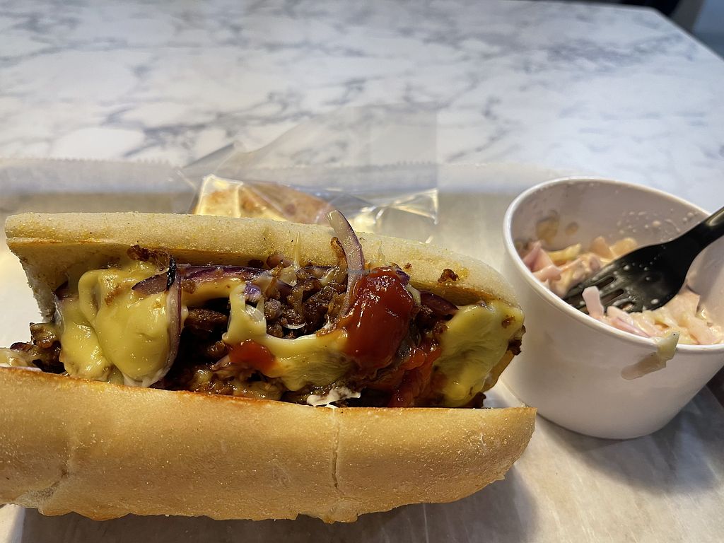 I’ve never had the chance to try a Philly cheesesteak before (veg or non veg) but the one I got here was amazing ! Would make the trip again. Also ordered yummy sweet potato fries and chocolate chip cookies to go.