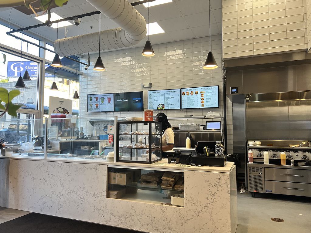 Casual vegan restaurant offering a large selection of fast food including burgers, chicken biscuit, Philly cheesesteak and a selection of salads and poke bowls. Black owned. Previously known as Urban Vegan. Open Mon-Sun 11:00am-8:00pm.