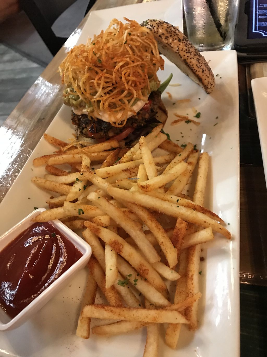 Casual atmosphere, beautiful building and decor, with fine dining quality food and cocktails! The menu states how to veganize, vegetarianize, and gluten-freeize almost all dishes! Most vegan modifications are also gluten free! Veggie patty and crumbles made in house with roasted tofu, black beans, mushrooms, carrots and onions (SO GOOD!!) All sides are vegan too! (Minus parmesan on the kettle chips) Vegan desserts to come! Definitely a place to visit and bring friends and family of all dietary dispositions!