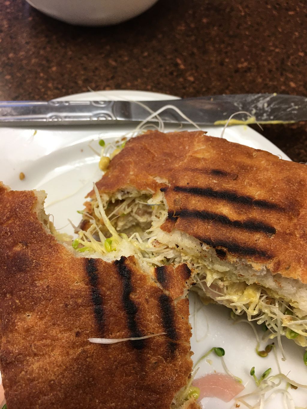 Avocado melt, lentil soup, quarantine smoothie, and eaten peanut butte…