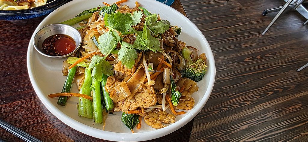 Completely vegan menu with so many options from small bites like dumplings, to noodles, burgers and more. I had the “chicken” pad Thai which was delicious. I can’t wait to go back to try more!