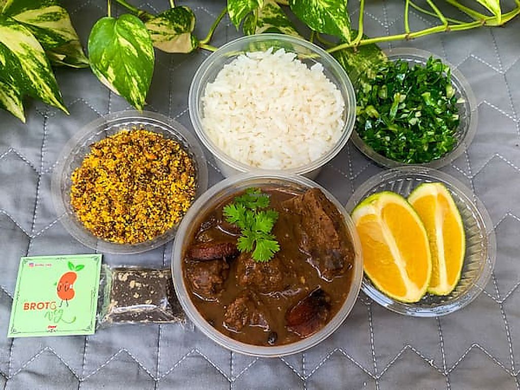 Offers fully vegan feijoada in various portion sizes, and every meal includes plant-based meat chunks, steak and sausage, rice, seasoned crunchy soy farofa, sautéed collard greens, orange slices, and rapadura (a traditional Brazilian sweet). Delivery only. Open Mon-Tue 10:30am-6:30pm, Wed-Thu 10:30am-5:00pm, Fri 10:30am-5:30pm, Sun 12:30pm-3:30pm. Closed Sat.