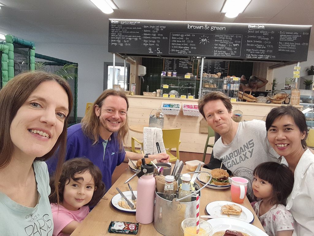 Serves meat, vegan options available. Small chain of breakfast and brunch cafes in London. Offers some vegan choices including pancakes for breakfast, sandwiches, brats, sausage/Mexican bean rolls, salads and more. Has alternative milks for drinks. Located opposite the soft play, can eat and drink whilst children are playing. This branch open since June '24. Open Mon-Sun 09:00-17:00.