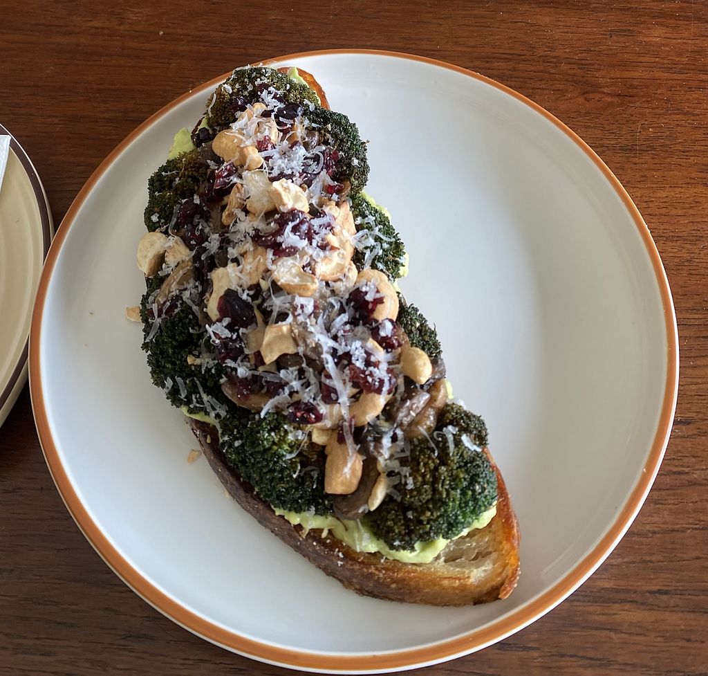 Serves meat, vegan options available. Fusion restaurant with some vegan-friendly dishes such as sourdough bread with smashed avocado, mushrooms, and grilled broccoli. Specify no butter when ordering. Open Mon-Thu 9:00am-7:00pm, Fri-Sun 9:00am-9:00pm.