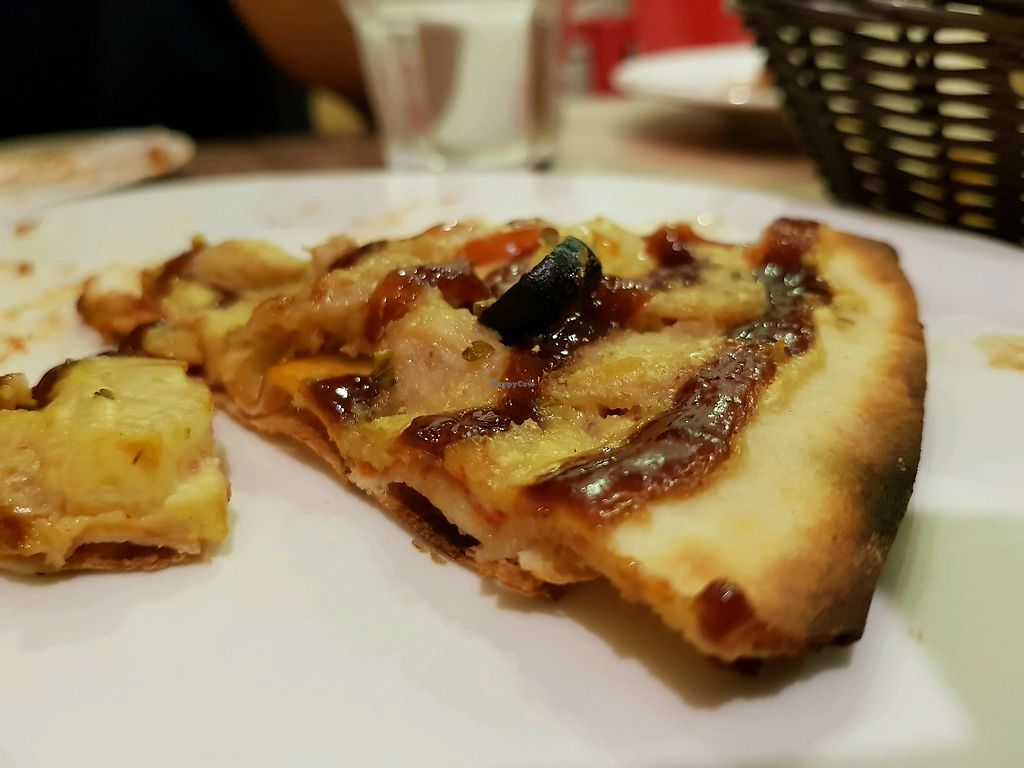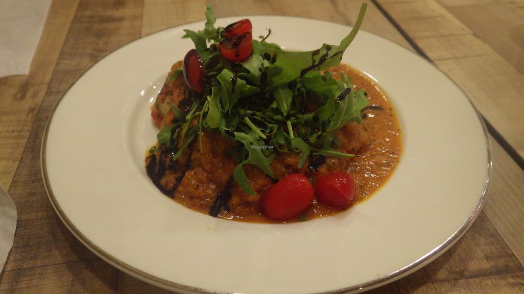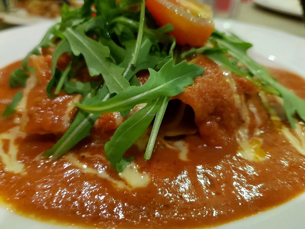 Food was great. We ordered "Chicken bbq pizza, lasagna, vegan fries with cheese sauce for starters, and brownie with dark choc ice cream. The pizza was way better than all the other Non-vegan pizzas i have tried before knowing that the cheese is plant-based. So creamy and tasty. The fries were also good but too late that we only saw the cheese sauce at the bottom. I was complaning deep inside that there wasnt enough cheese sauce only to find out it was at the bottom! I was already too full to enjoy it. The lasagna was good at first bec the taste of the sauce was kind of complemented by the arugula leaves. Turned out that the noodles were a bit undercooked (so they were quite hard to slice and bite). The sauce was a tad sweet for my liking. It was mostly flat noodles, a few zucchini slices underneath and no lentils as described from another review. A bit of a disappointment to be honest bec i've had high expectations reading from prev reviews.
