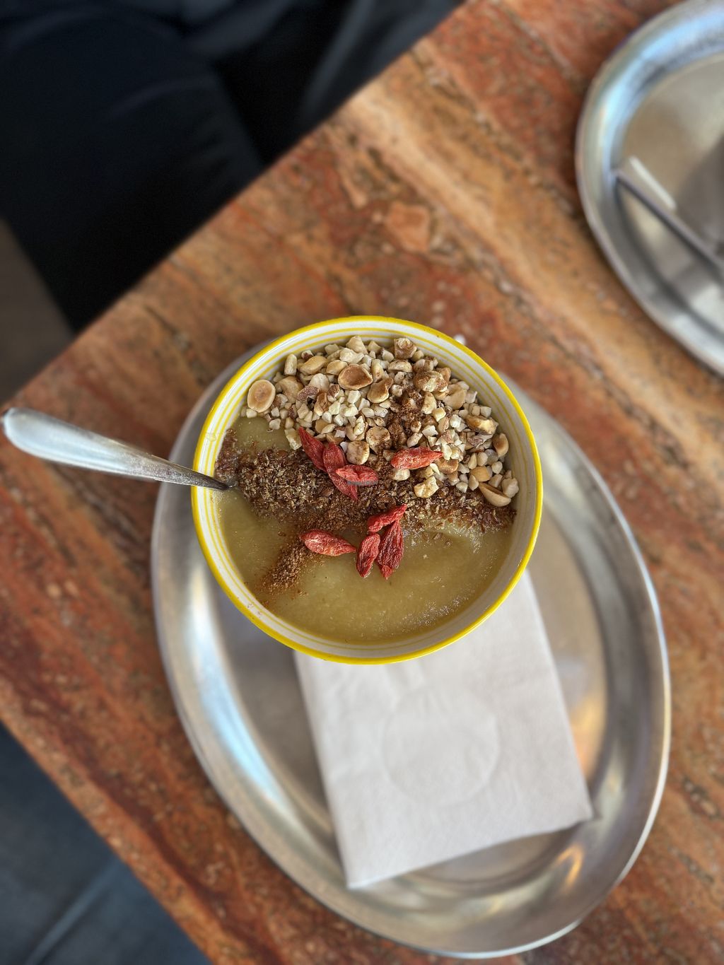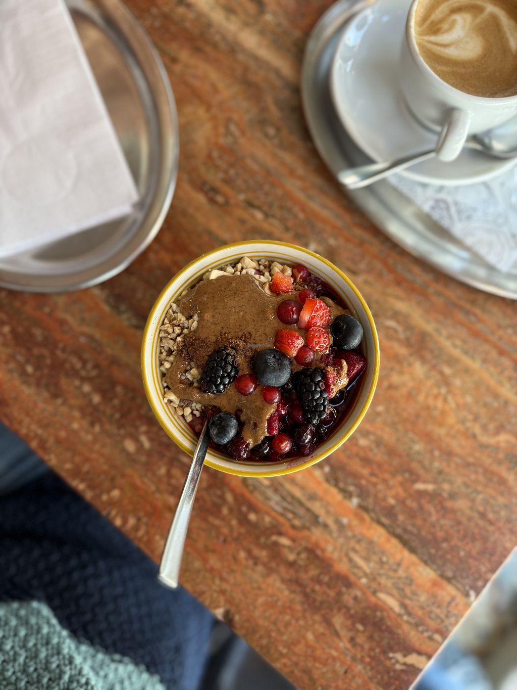 For breakfast, you choose from a variety of different kinds of breads and small loaves, and pay per piece. Then you choose from add-ons from the menu (such as the hummus). The coffee and drinks were nice. The seating is very cozy. All in all a good option if you are in the area, as there aren't so many vegan breakfast options. Good if you're with omnivores.