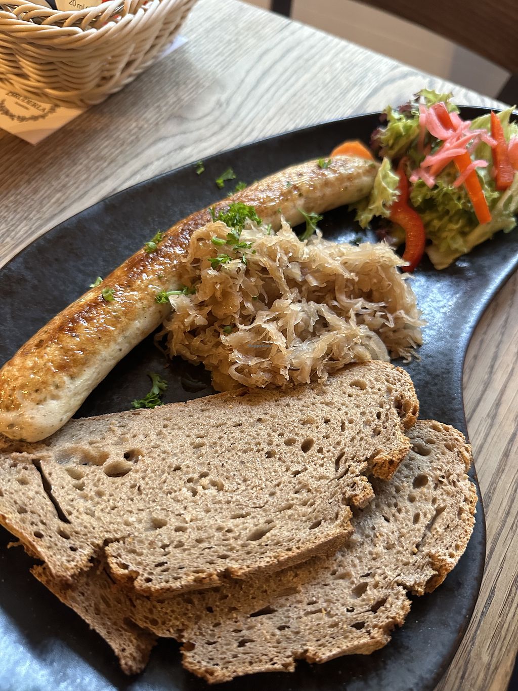 Bratwurst mit Kraut und Brot
