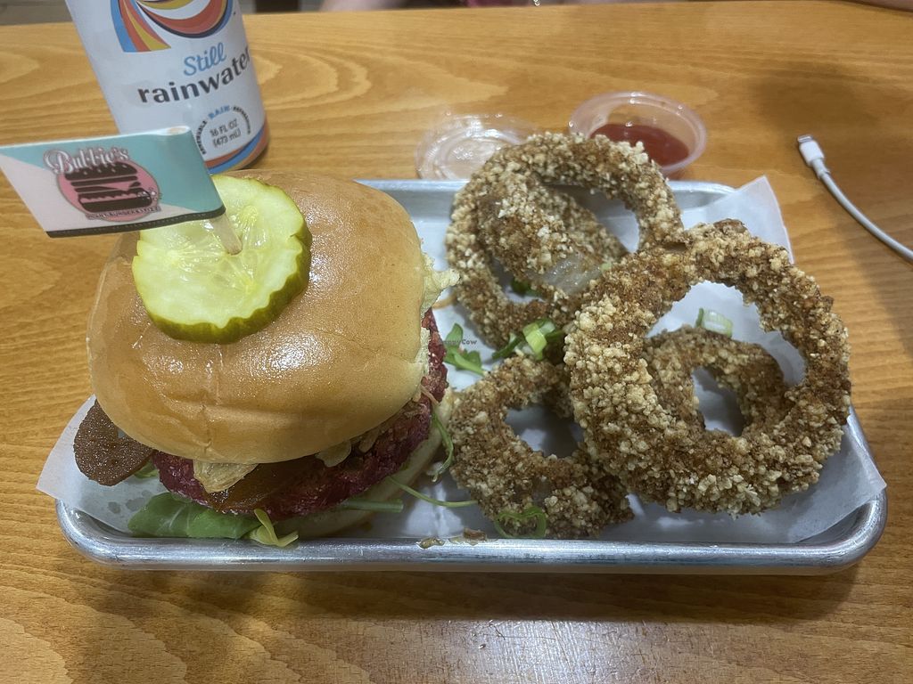 Buffalo chicken sandwich and Cap’n Crunch shake