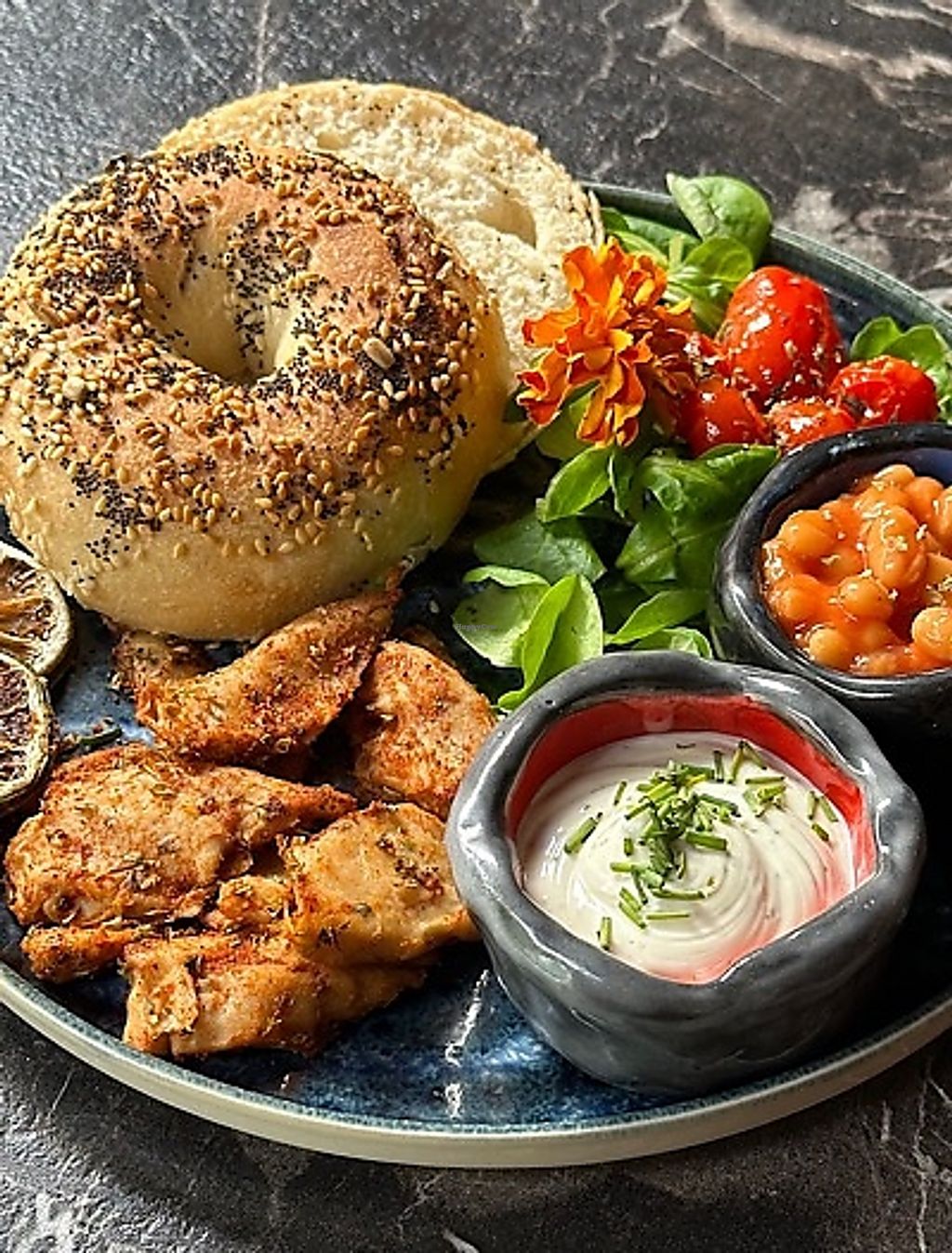 Brunch with chicken challenge bagel