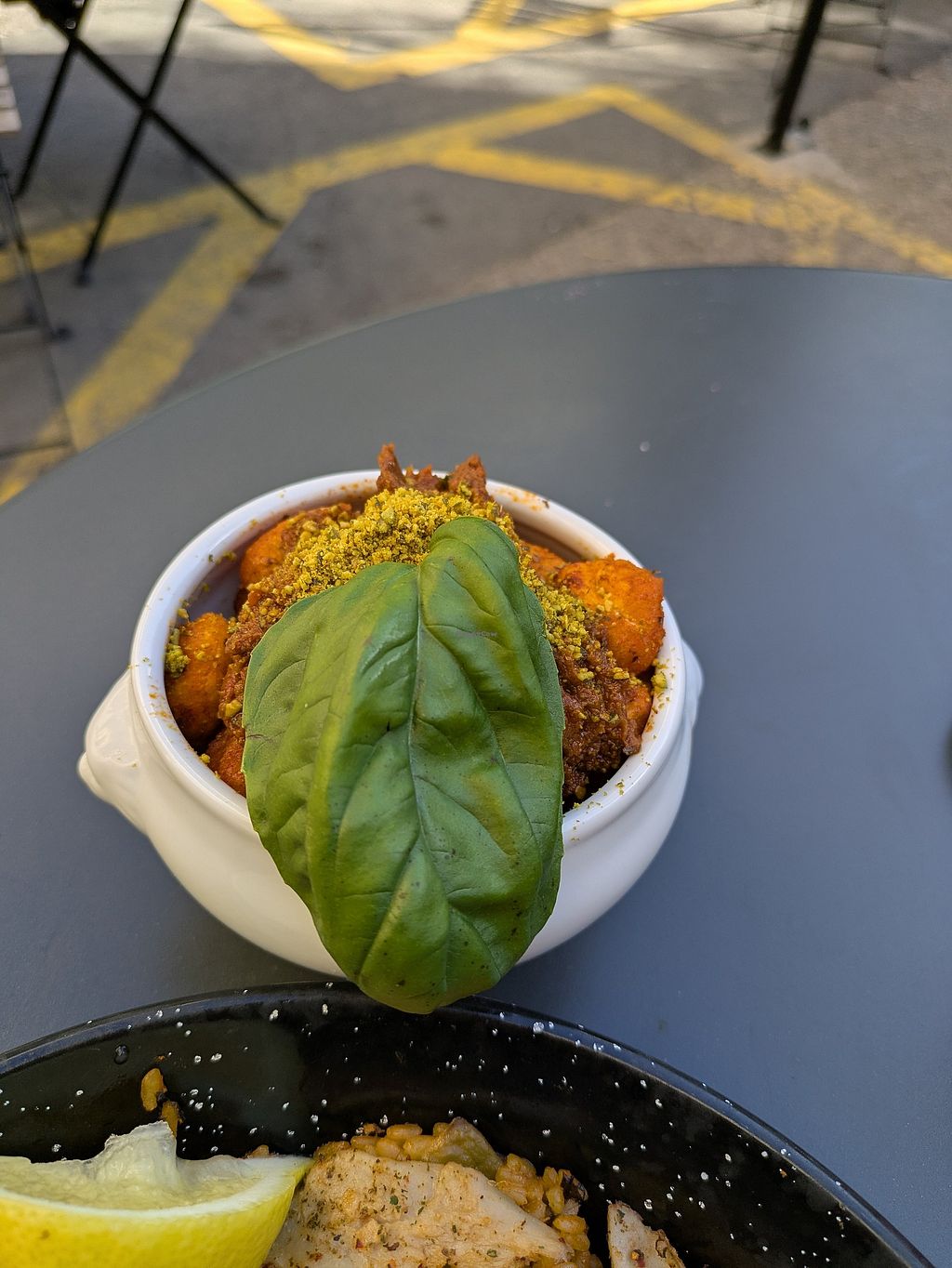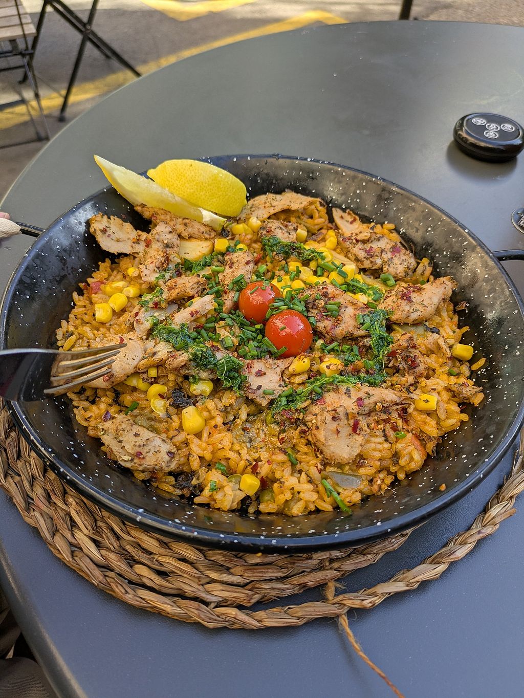 Monalisa and Morgana drinks. Faux seafood and chicken paellas