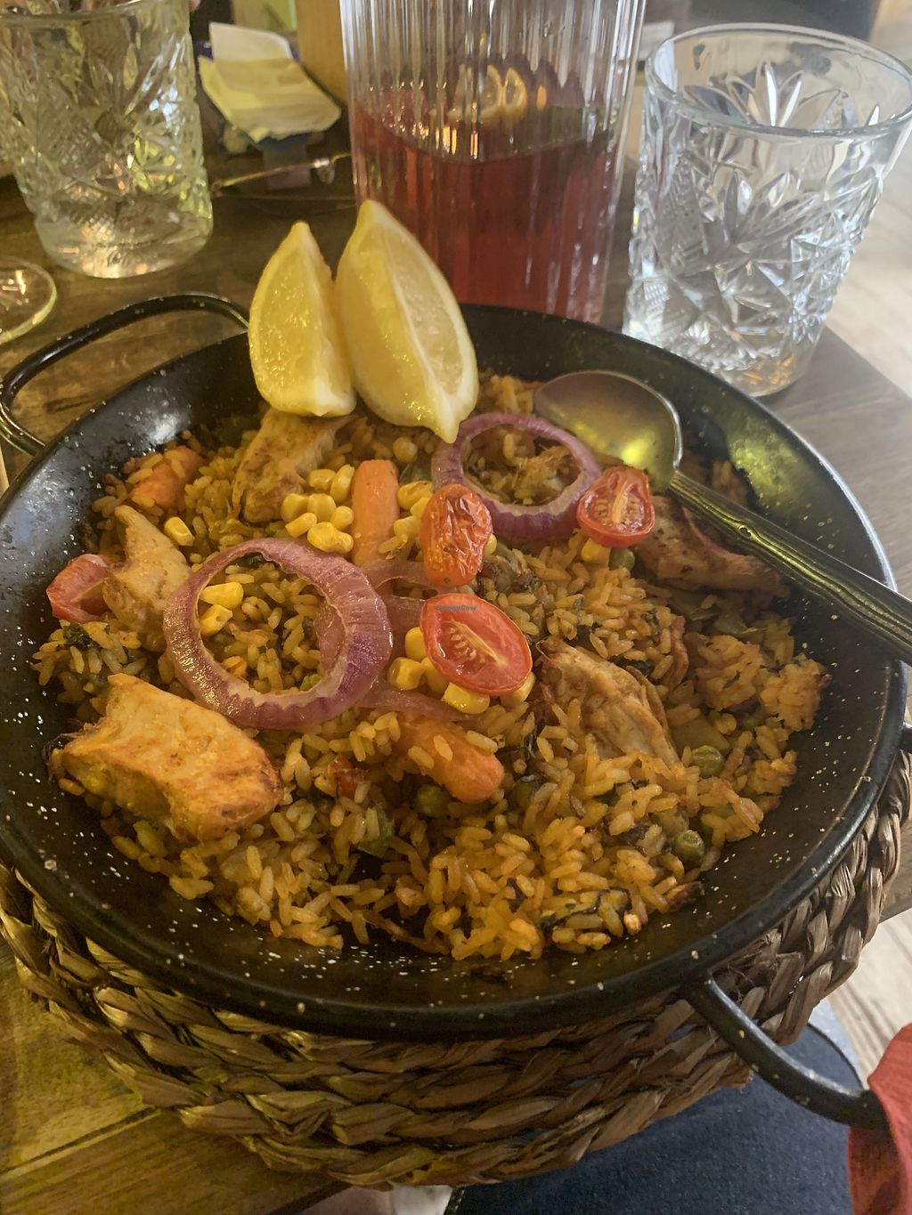 Read moreThe vegan cheese was amazing. The Cleopatra sangria basically tasted like strawberry juice. The paella was nice but the portions are too small.