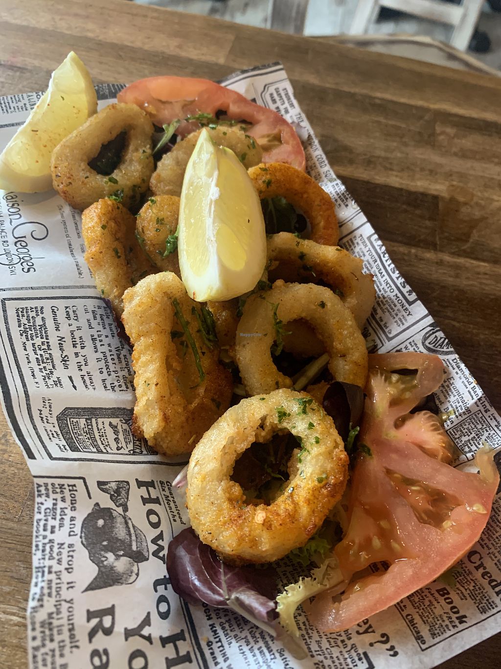Pros: 100% vegan, The calamari was amazing! , Beautiful and quirky interior with great staff