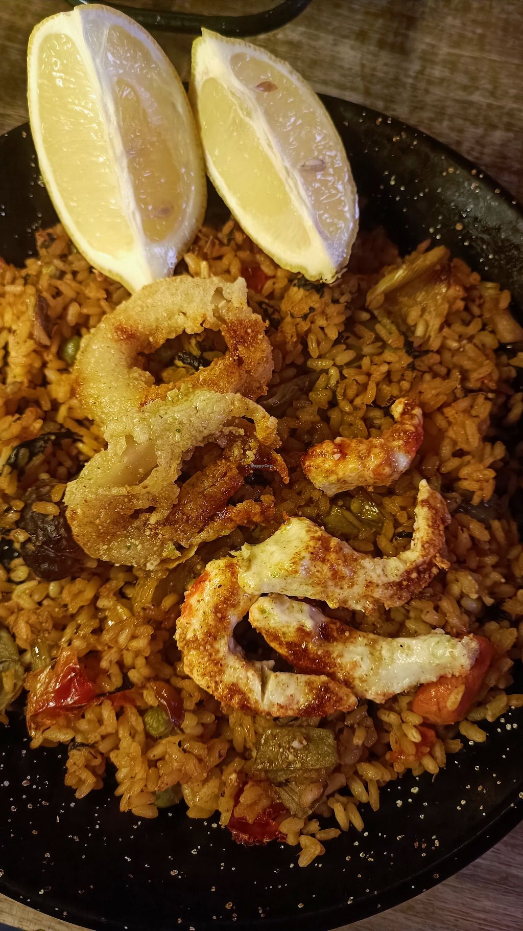 Tapas and vegan seafood were good. Small portions for the price are my reason for 4 stars. We split tapas and paella and were still hungry.