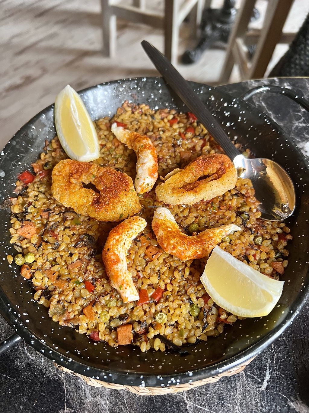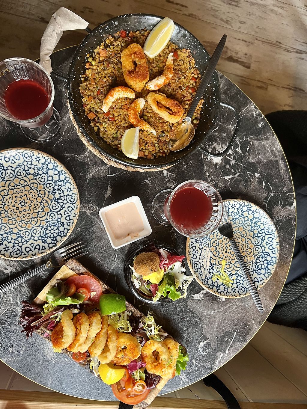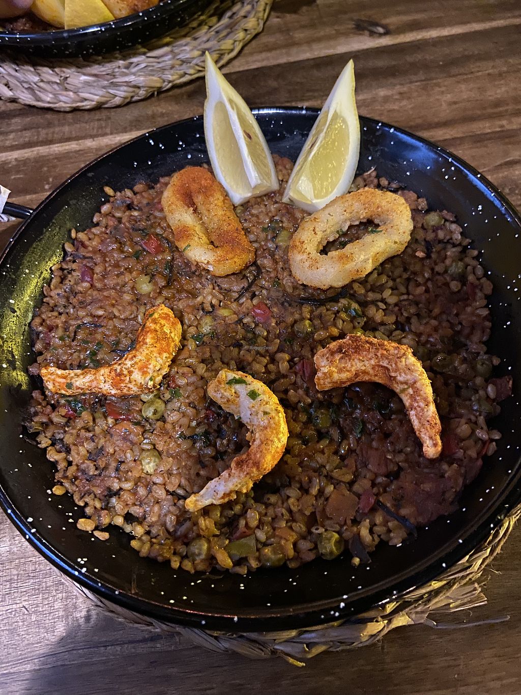 Very nice diner! And very tasteful vegan paella with plantbased shrimps and calamari.