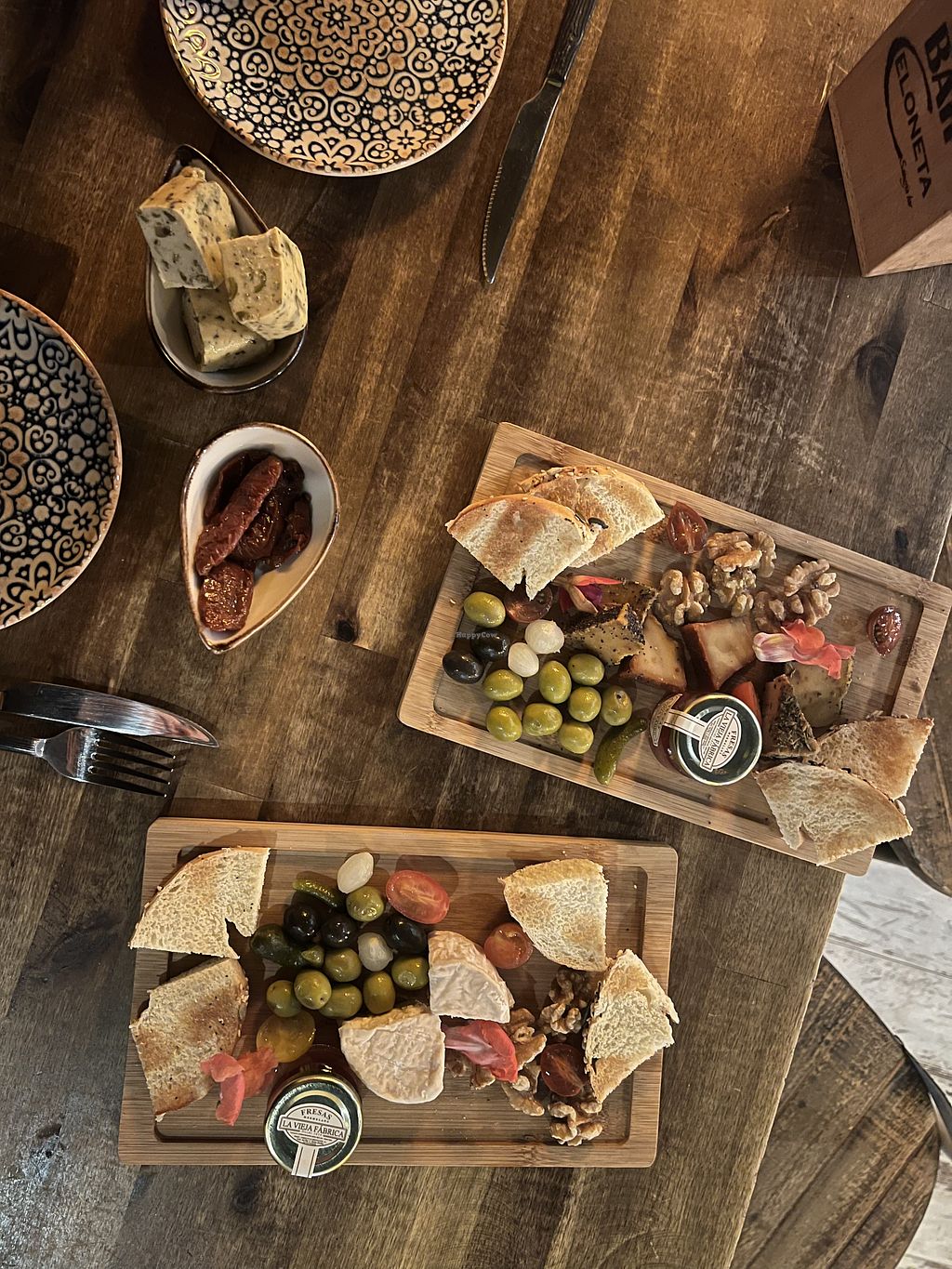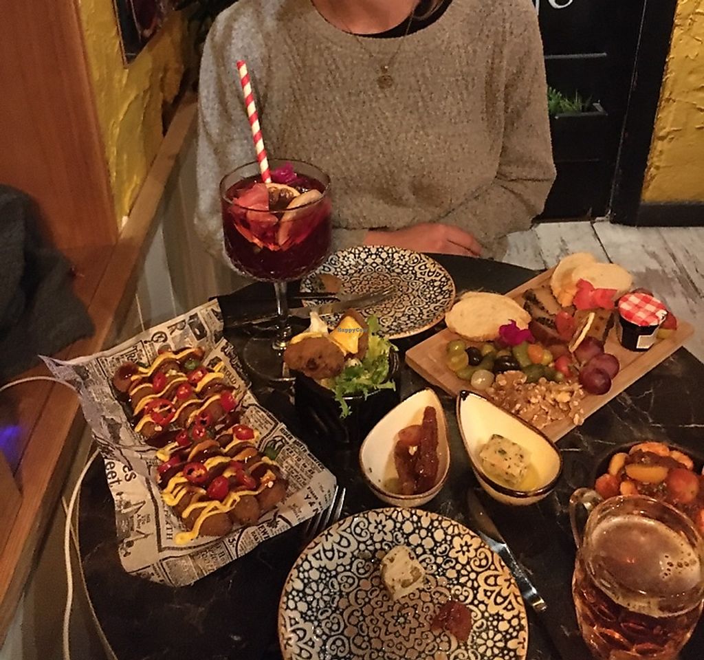Lovely cozy place with friendly staff. Large selection, will have to come back to try the paëlla and desserts. For now we had a selection of 3 nut 'cheeses' and the 'camembert' with a Cava. Good combination, nice to see how far the vegan cheese options have come.